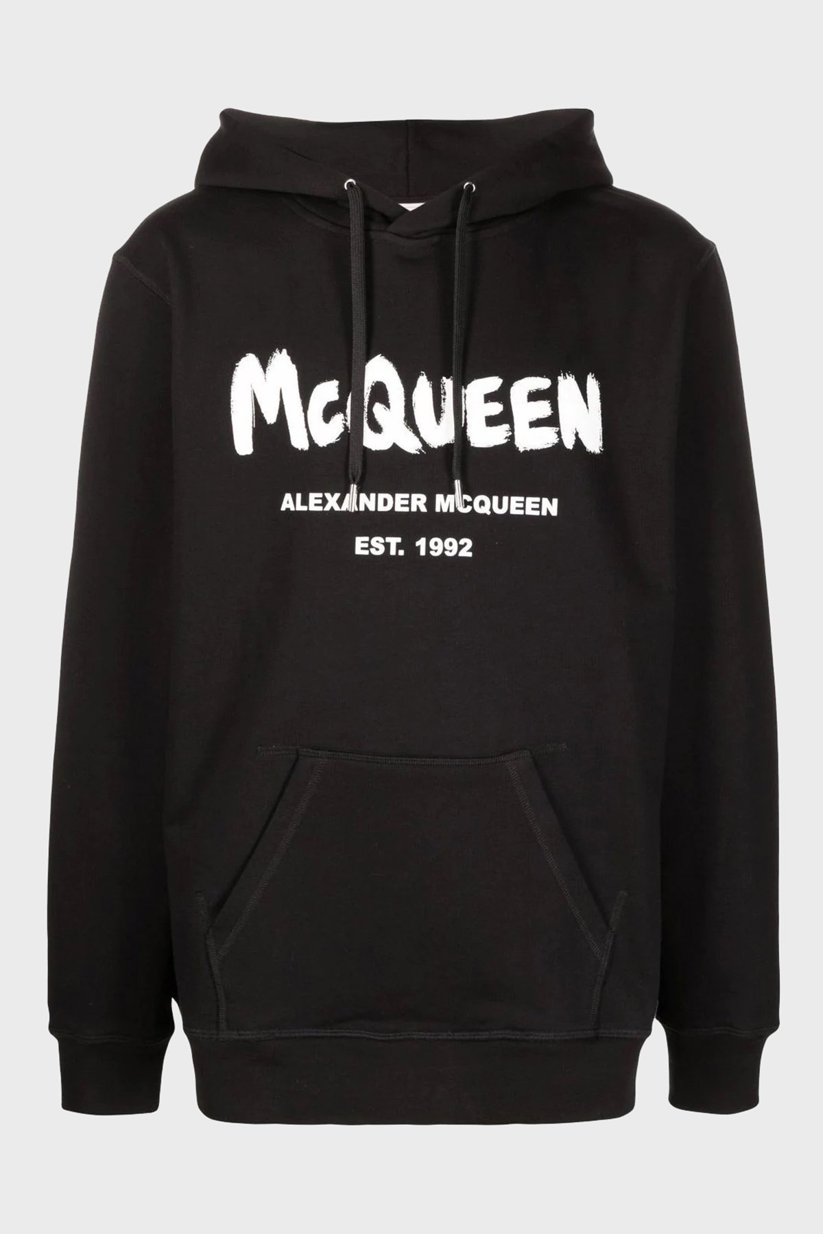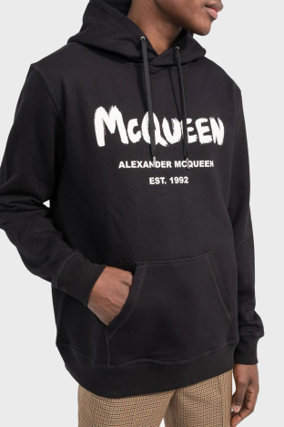 Baskılı % 100 Pamuk Kapüşonlu Oversize Erkek Sweat 688715QTZ81 0901 SİYAH