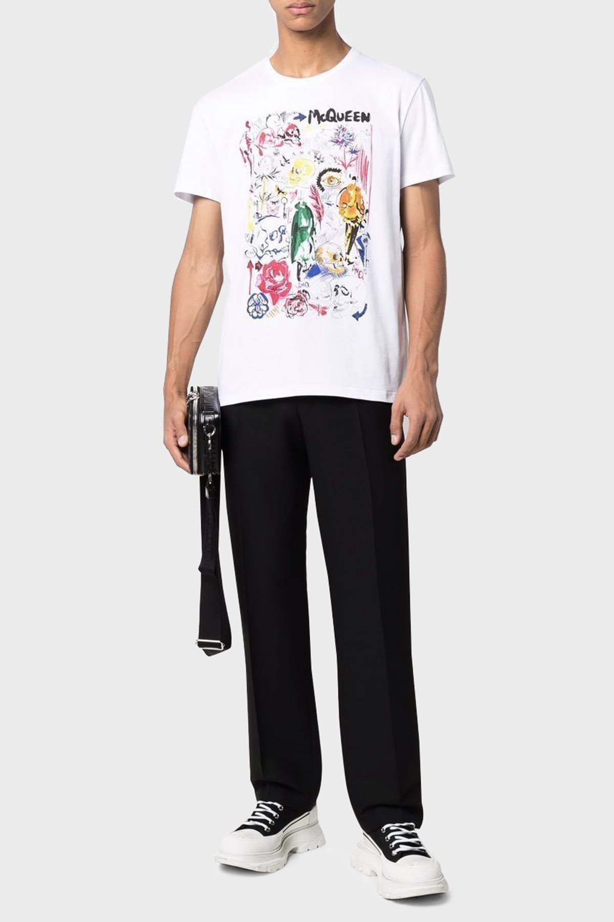 Alexander Baskılı Pamuklu Bisiklet Yaka Erkek T Shirt 682517QSZ51 0900 BEYAZ