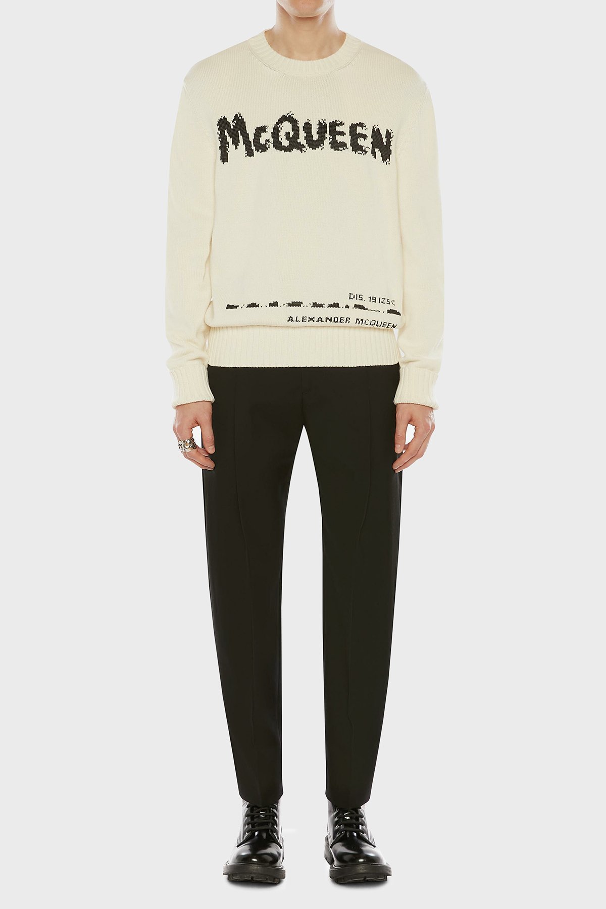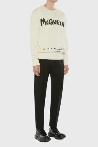 Baskılı Regular Fit Bisiklet Yaka % 100 Pamuk Erkek Kazak 626454Q1WZL 9227 KIRIK BEYAZ
