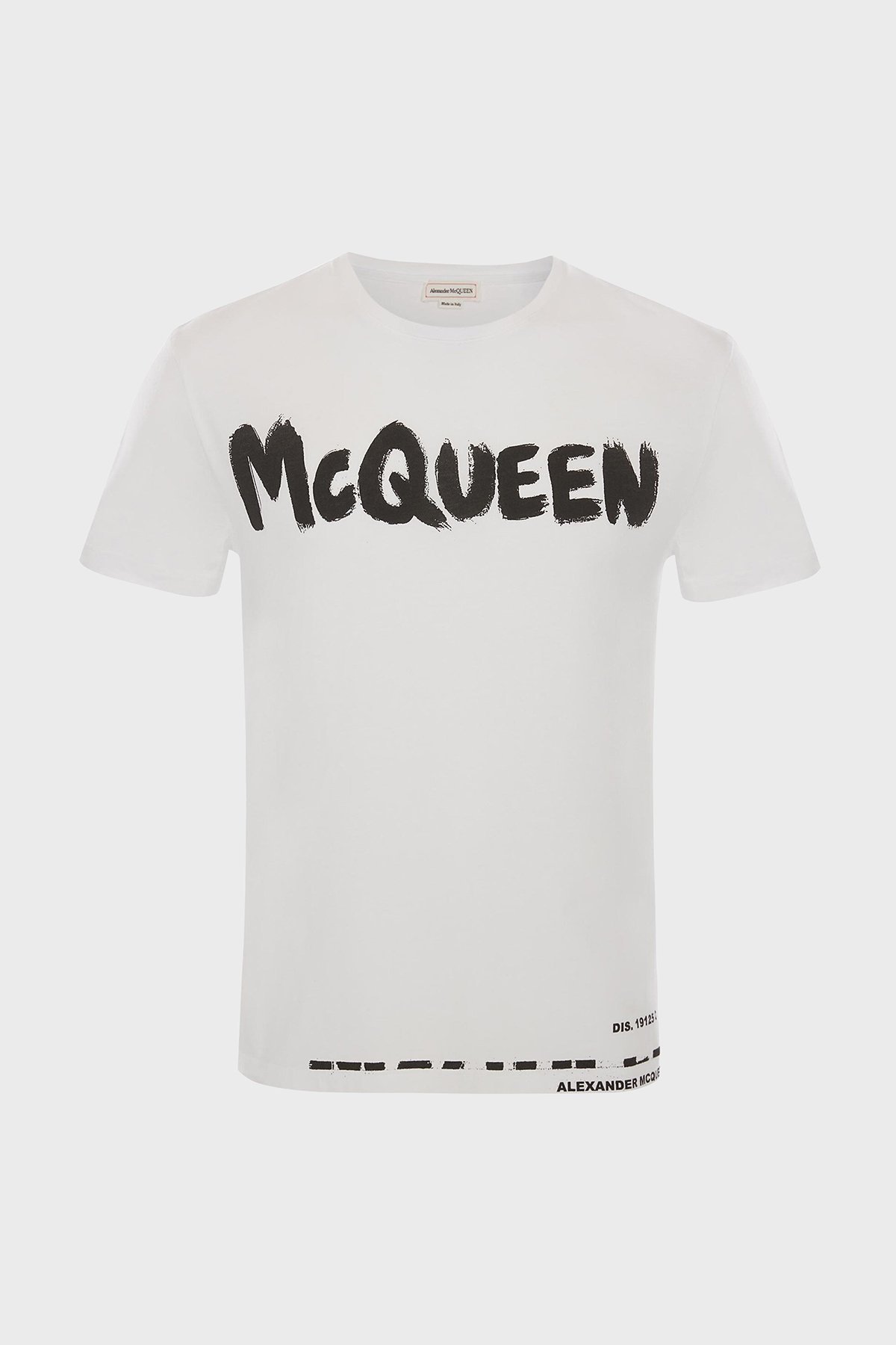 Alexander Logo Baskılı Bisiklet Yaka % 100 Pamuk Erkek T Shirt 622104QSZ57 0900 BEYAZ