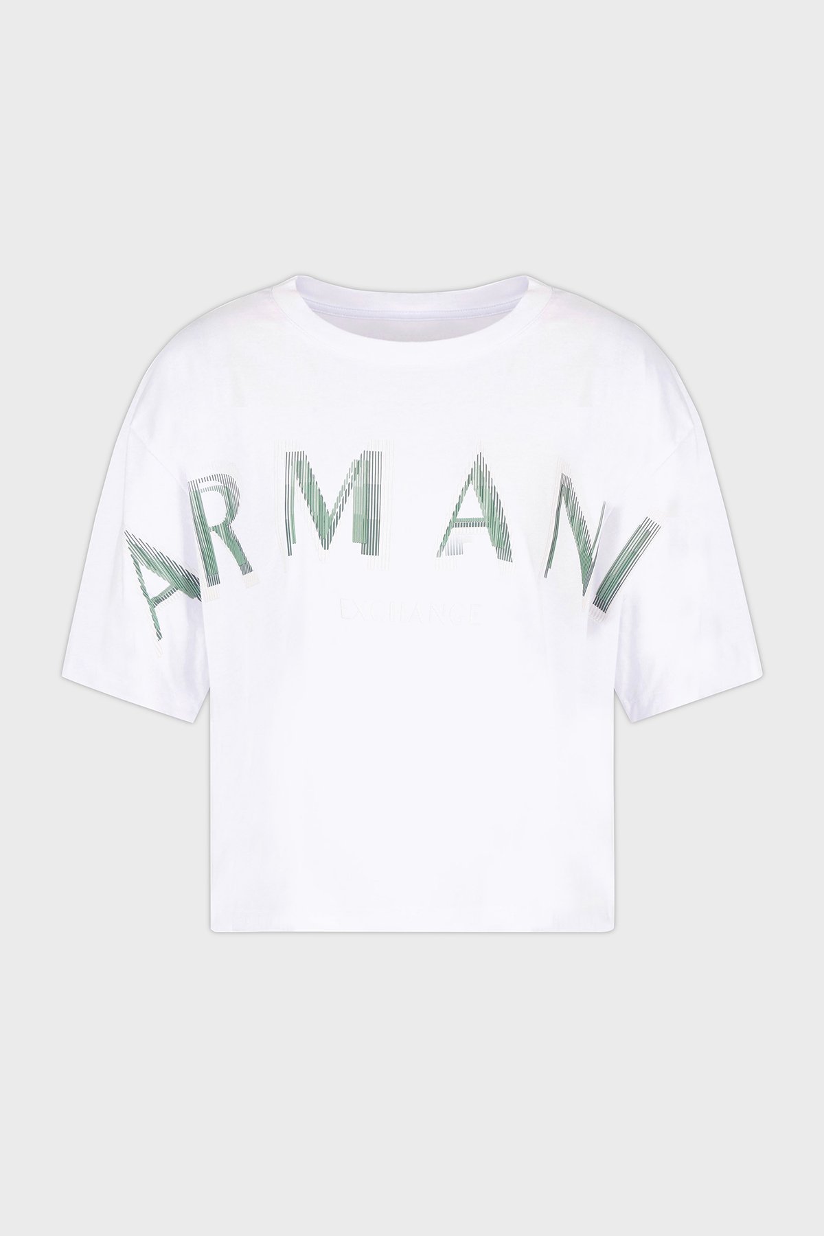 Armani Exchage % 100 Pamuk Cropped Fit Bisiklet Yaka Logolu Bayan T Shirt XW000520 AF10359 U0002 BEYAZ