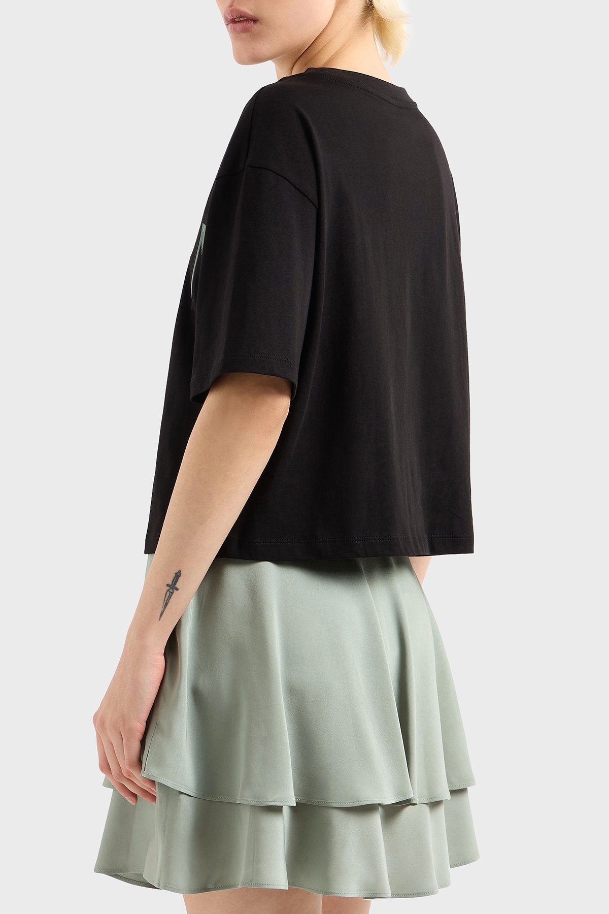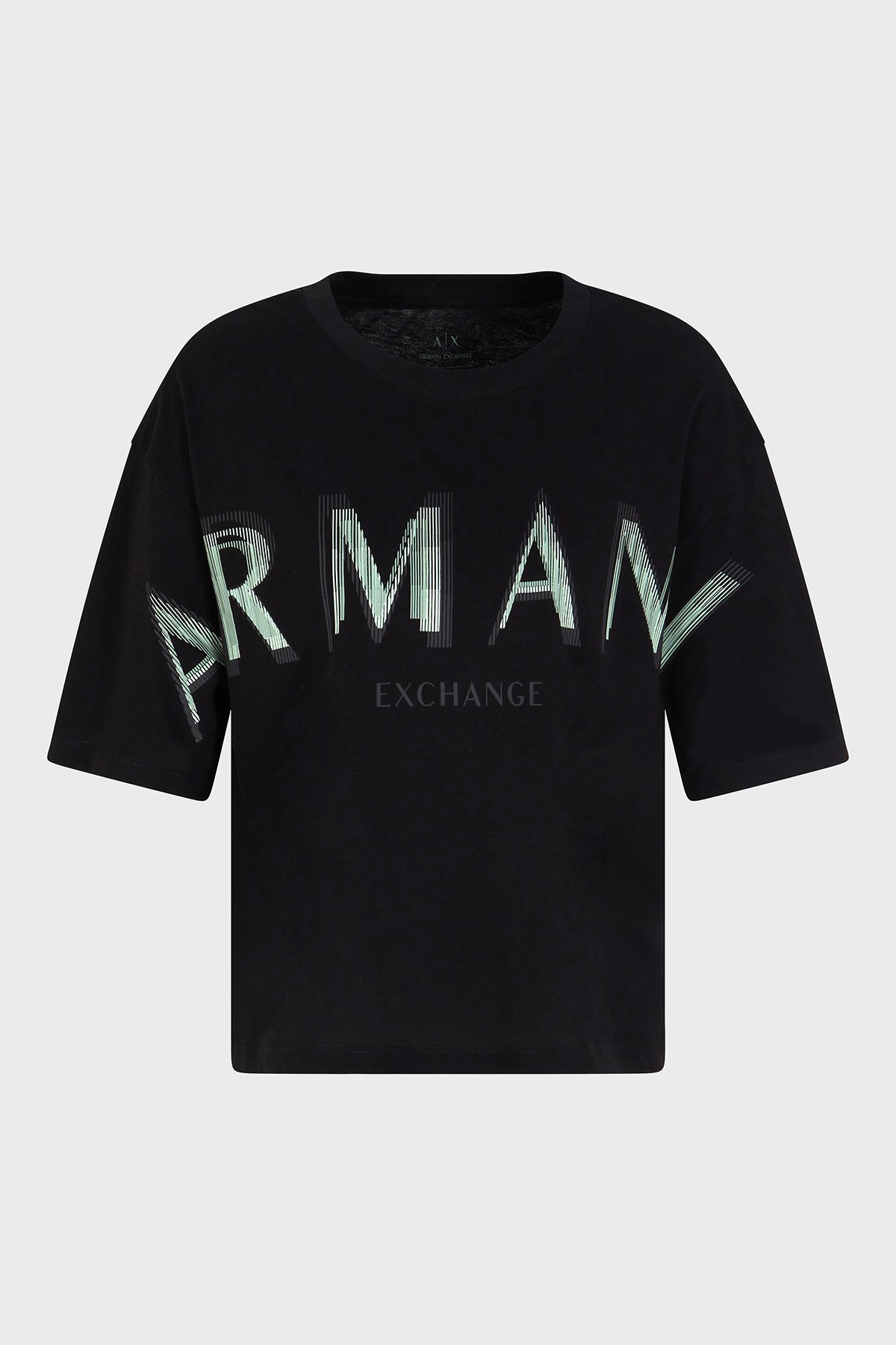 Armani Exchage % 100 Pamuk Cropped Fit Bisiklet Yaka Logolu Bayan T Shirt XW000520 AF10359 UC001 SİYAH