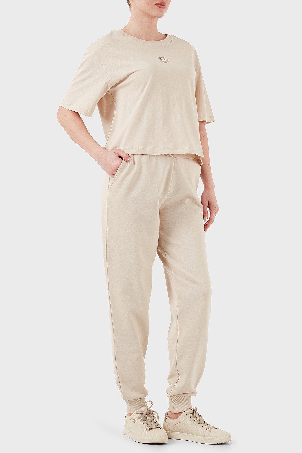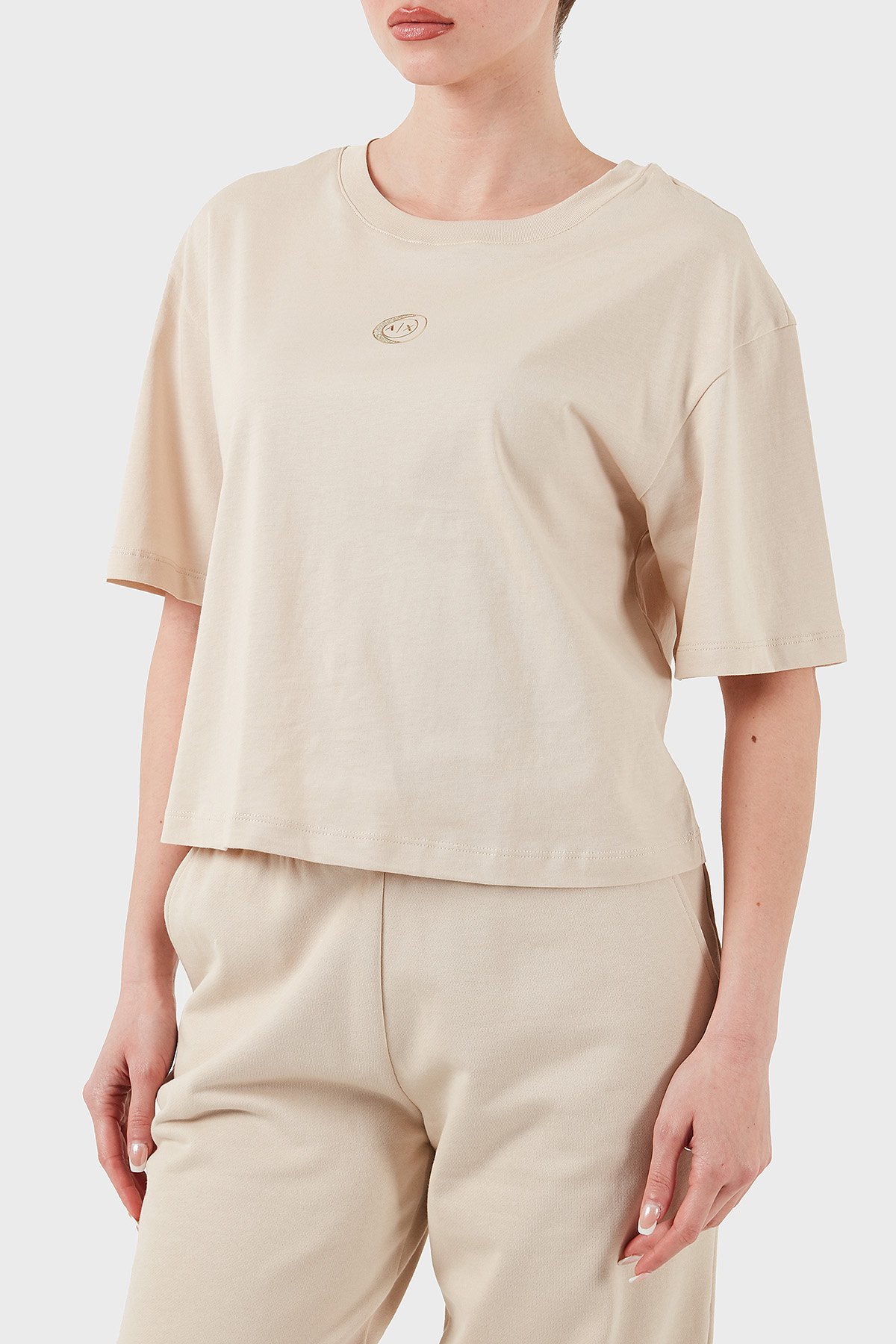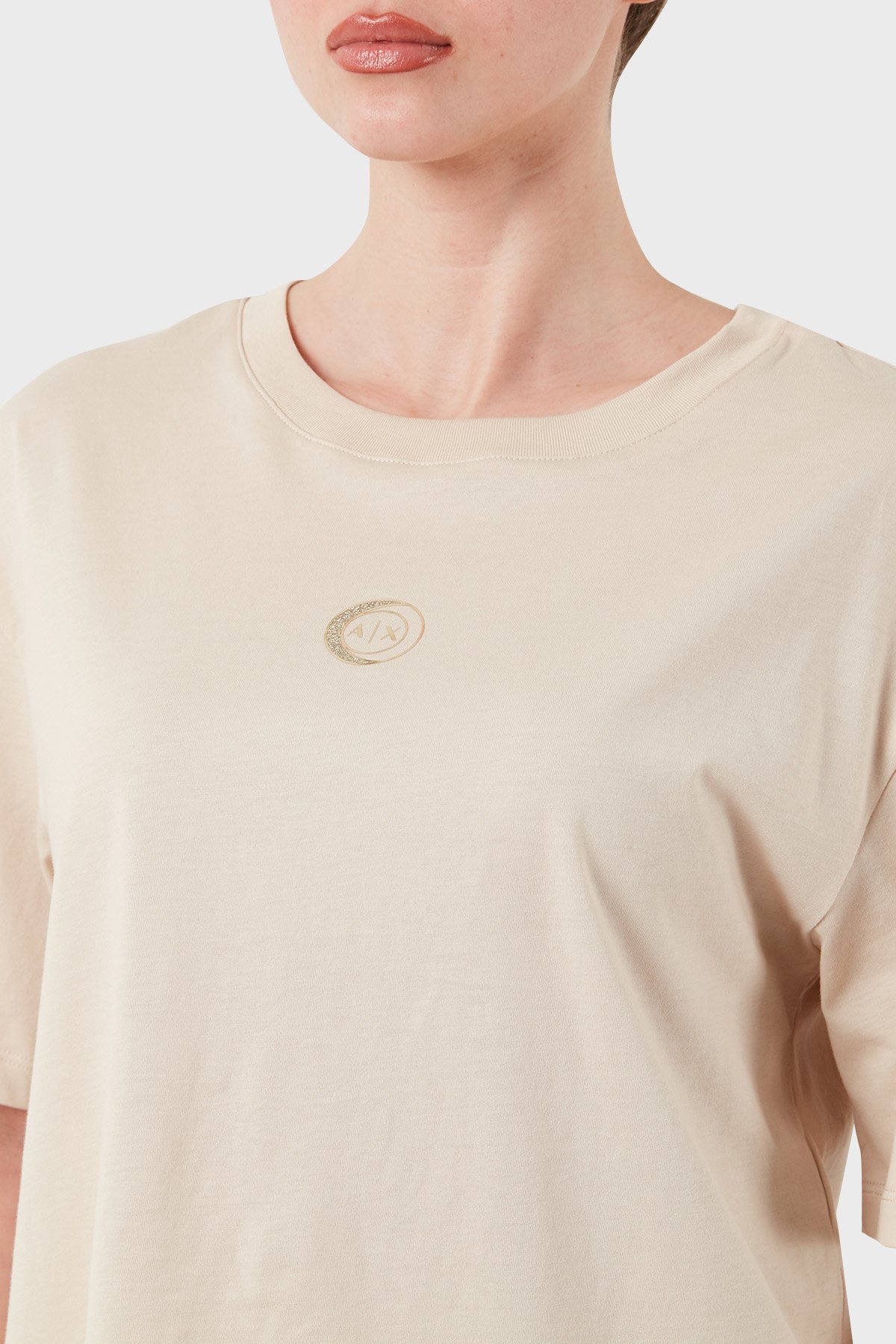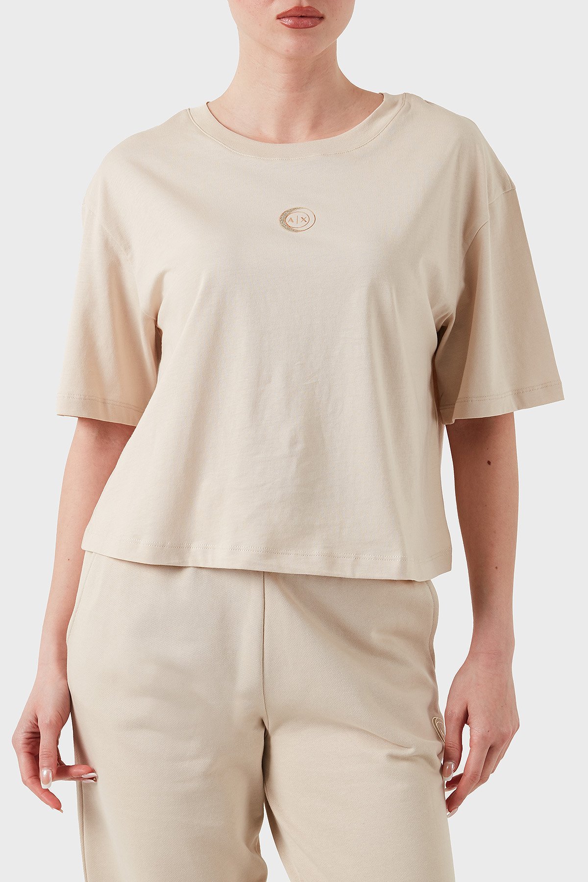 Armani Exchage % 100 Pamuk Regular Fit Bisiklet Yaka Bayan T Shirt XW000321 AF10356 U1095 BEJ