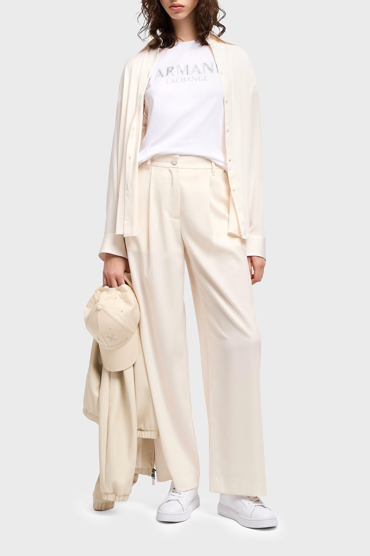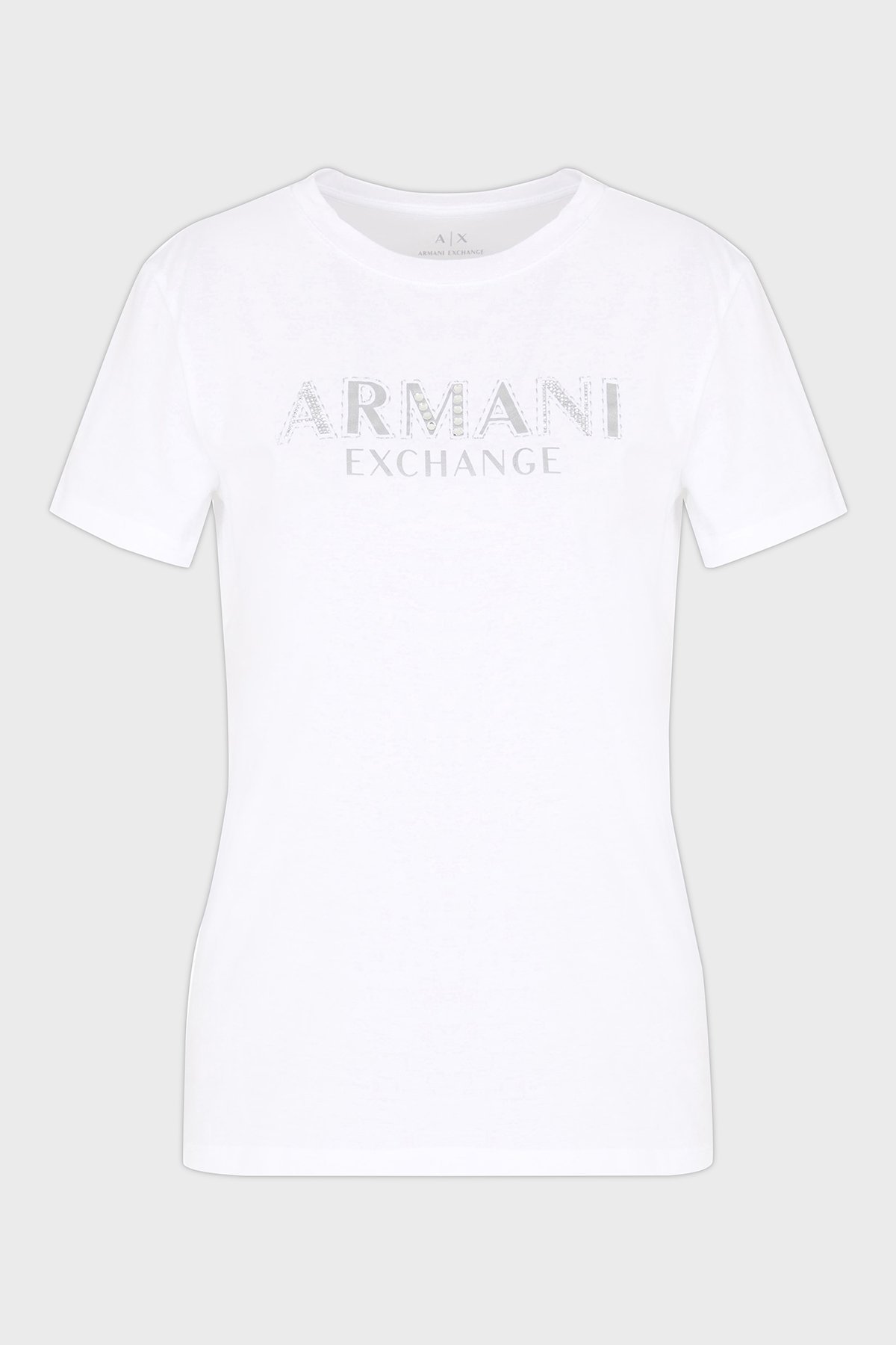 Armani Exchage % 100 Pamuk Regular Fit Bisiklet Yaka Logolu Bayan T Shirt XW000387 AF10354 U0002 BEYAZ
