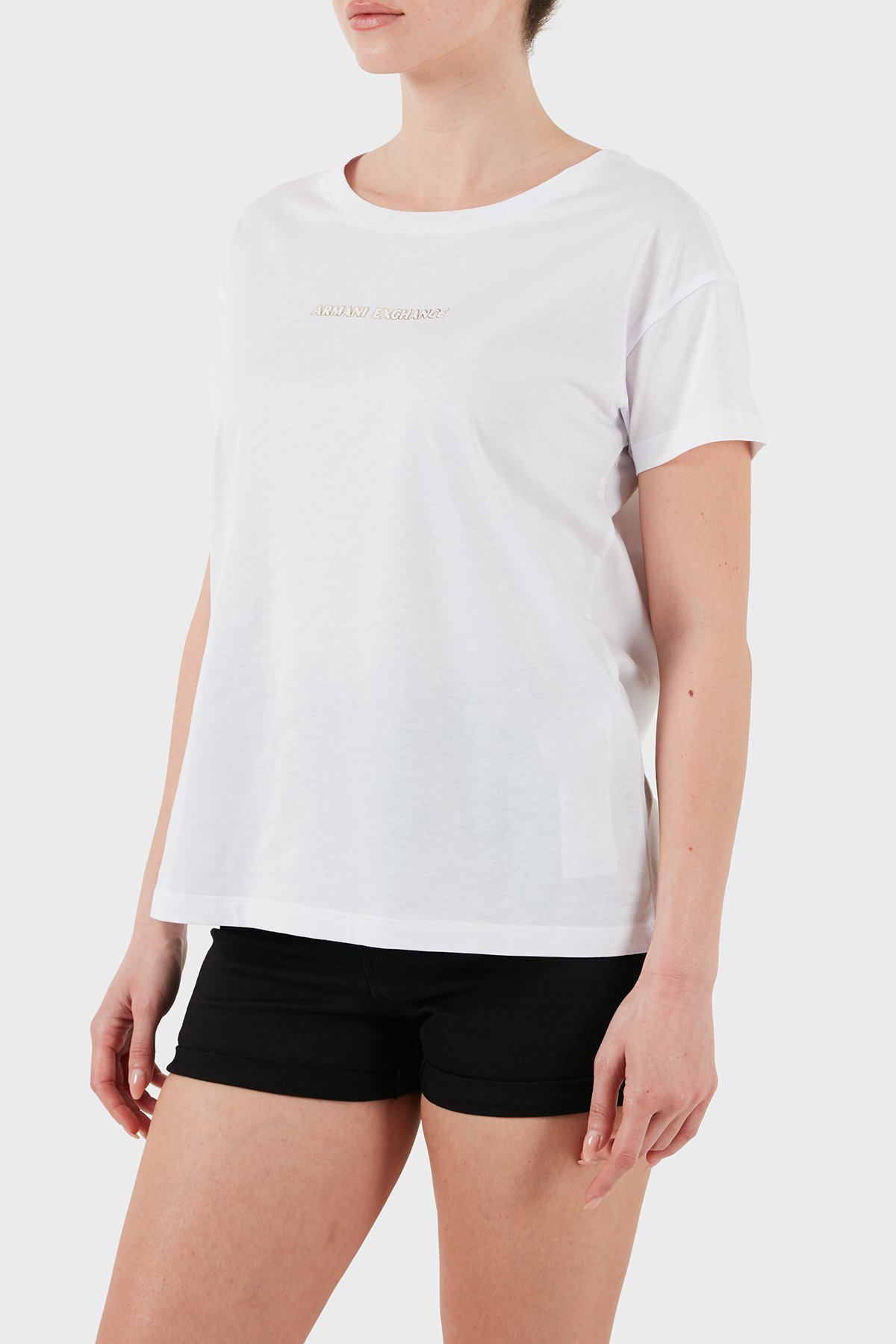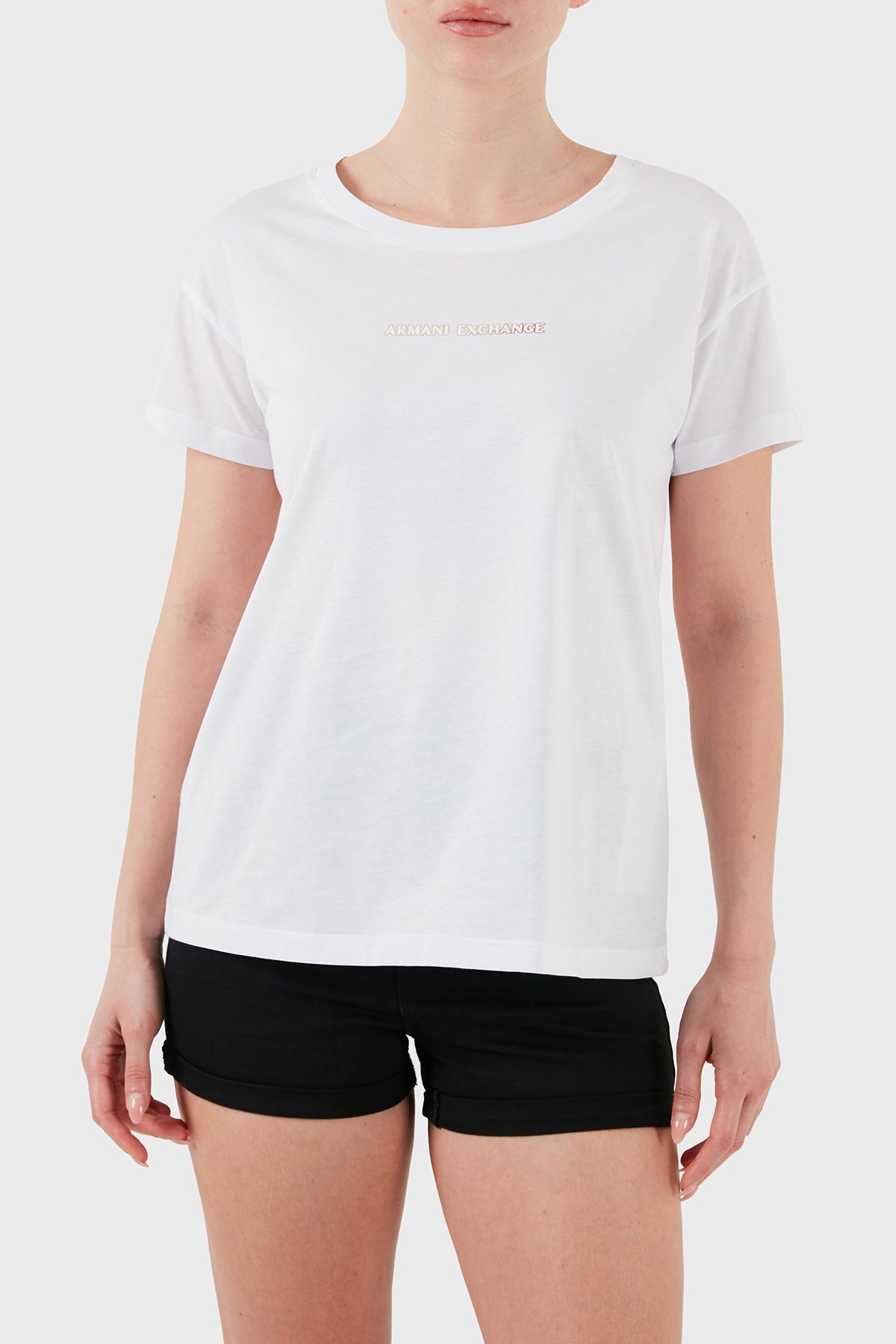 Armani Exchage % 100 Pamuk Regular Fit Bisiklet Yaka Logolu Bayan T Shirt XW000534 AF10359 U0002 BEYAZ