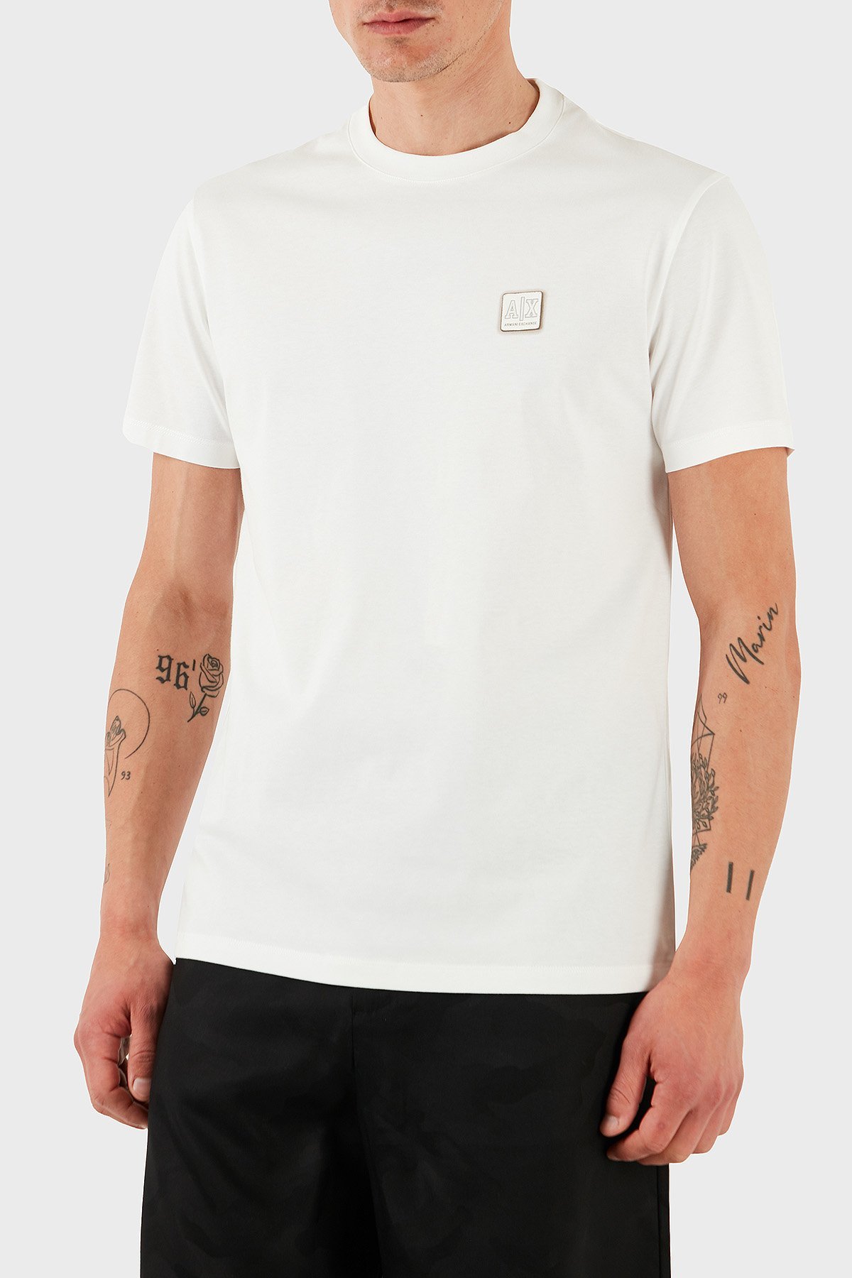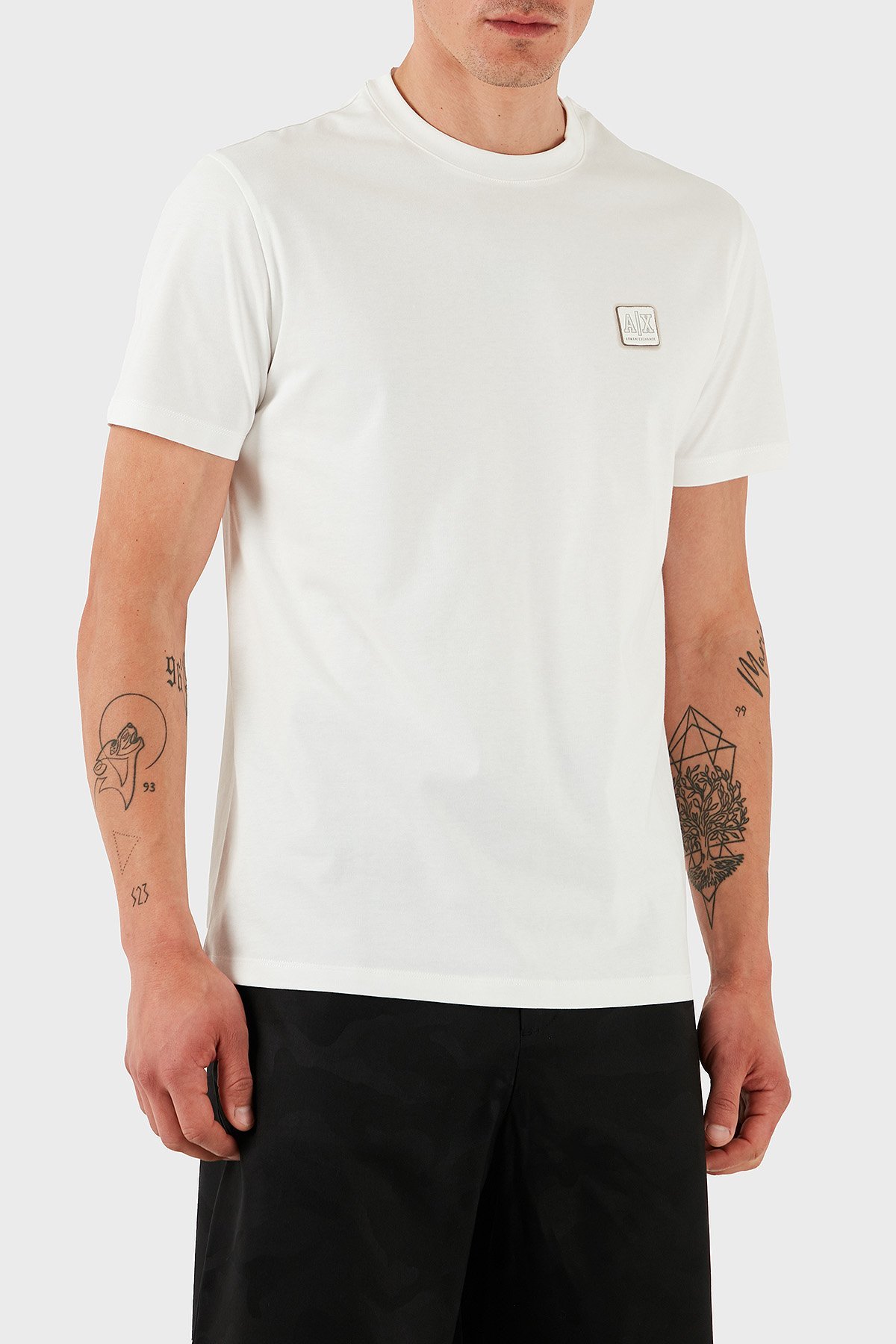 Armani Exchage % 100 Pamuk Regular Fit Bisiklet Yaka Logolu Erkek T Shirt XM000546 AF10361 U0009 BEYAZ