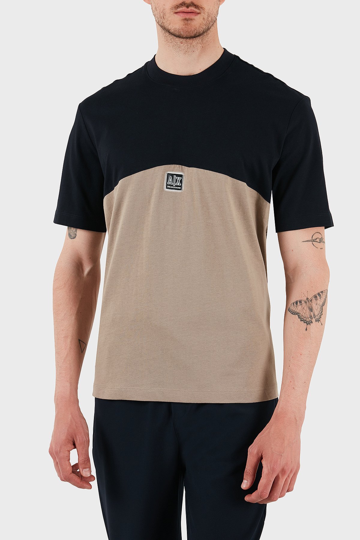 Armani Exchage % 100 Pamuk Regular Fit Sıfır Yaka Erkek T Shirt XM000485 AF10362 MB039 LACİVERT-BEJ