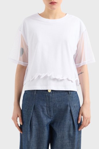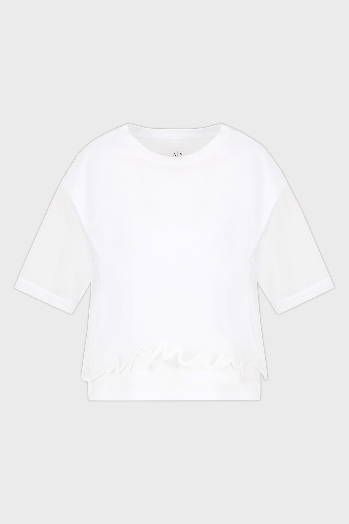 Armani Exchage % 100 Pamuk Regular Fit Tül Detaylı Crop Bayan T Shirt XW000541 AF10359 U0002 BEYAZ
