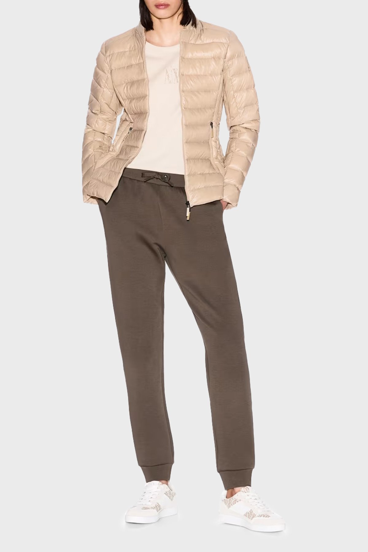 Armani Exchage % 100 Pamuk Relaxed Fit Taşlı Logolu Bayan T Shirt XW000830 AF10356 U1092 KREM