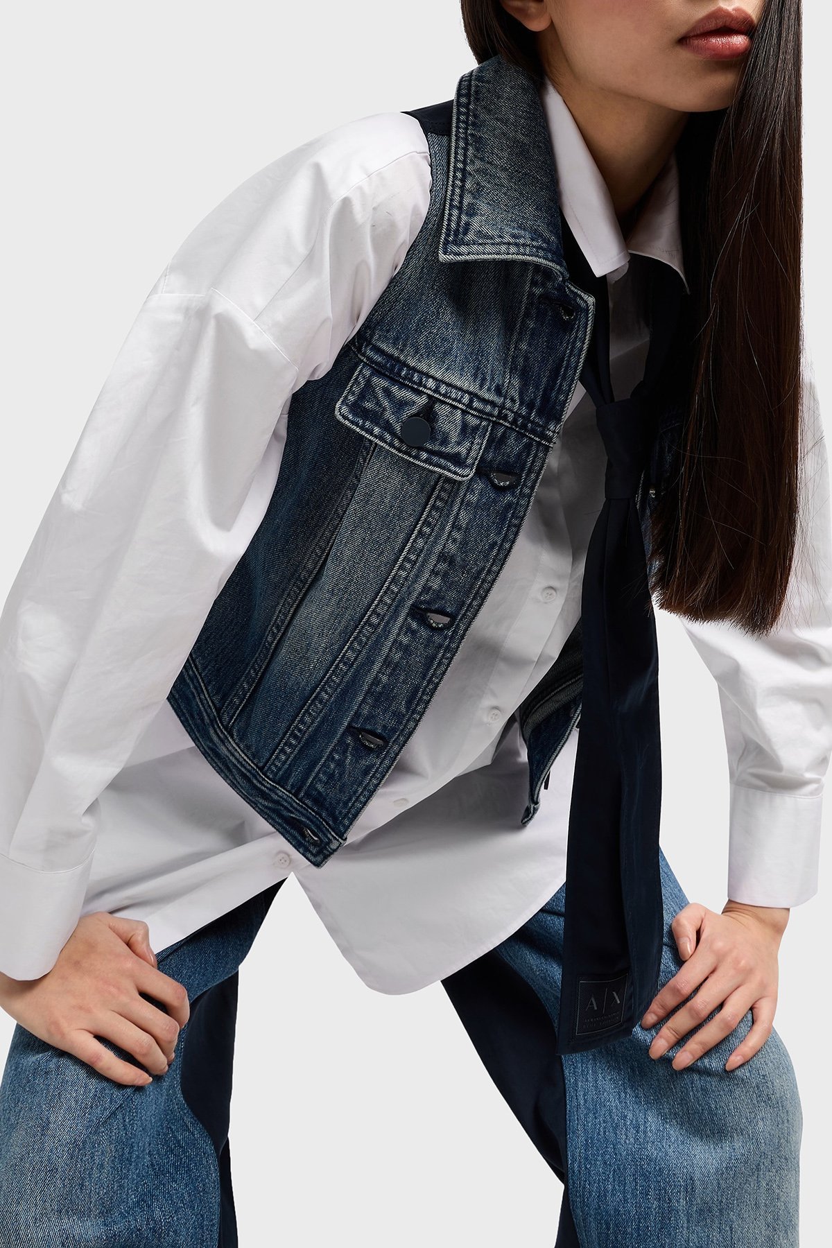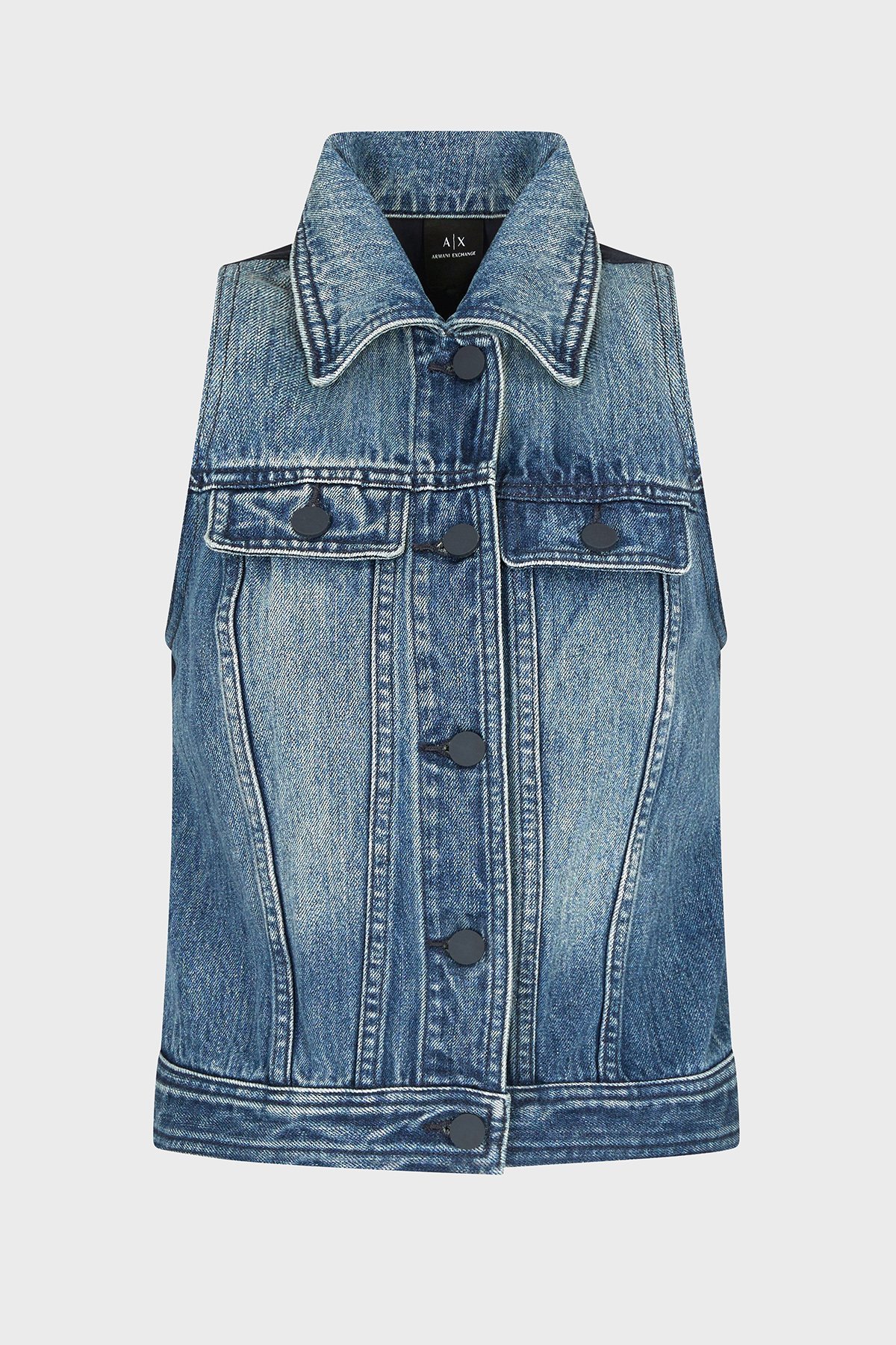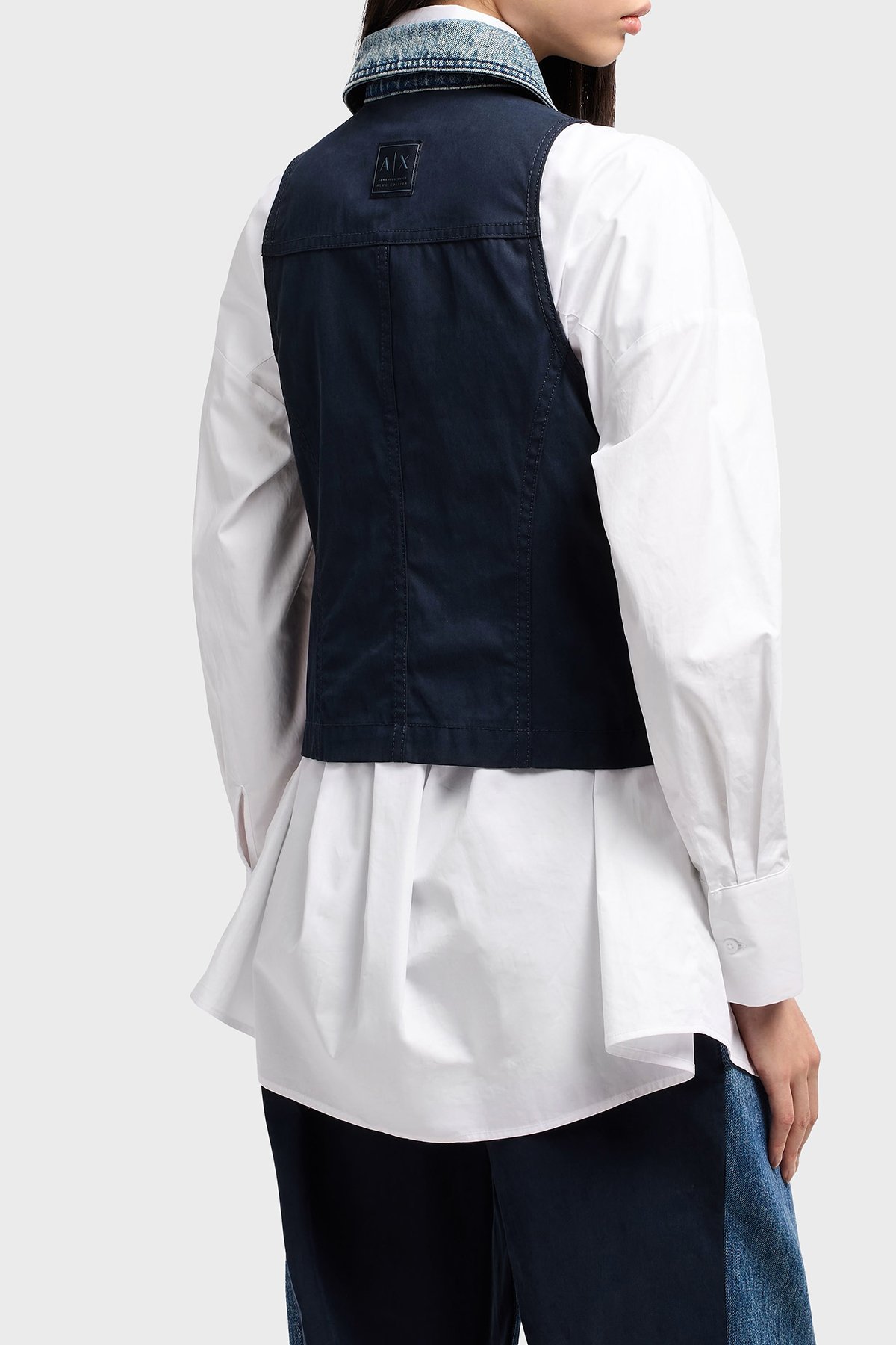 Armani Exchage % 100 Pamuk Slim Fit Kolsuz Bayan Kot Ceket XW000558 AF12845 MB115 LACİVERT