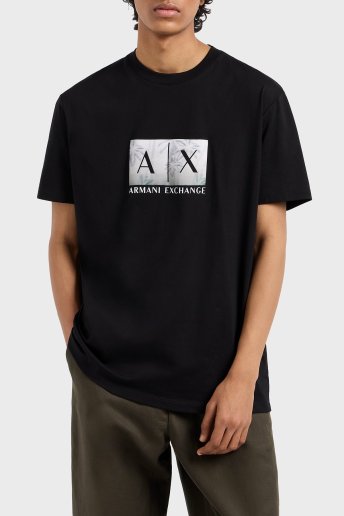 Armani Exchage Baskılı % 100 Pamuk Regular Fit Bisiklet Yaka Erkek T Shirt XM000555 AF10358 UC001 SİYAH