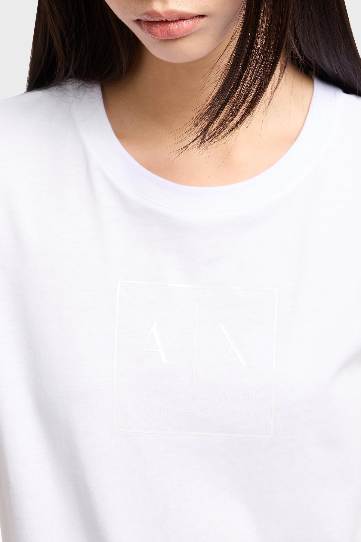 Armani Exchage Logolu % 100 Pamuk Slim Fit Bisiklet Yaka Bayan T Shirt XW000530 AF10359 U0002 BEYAZ