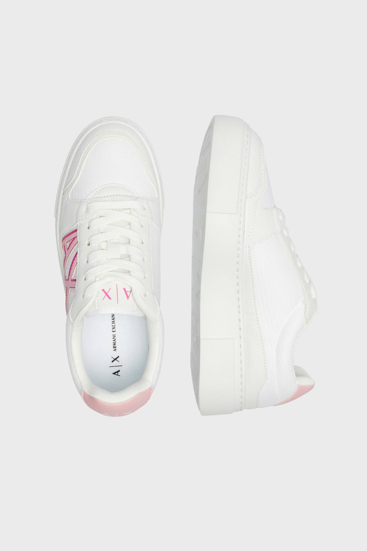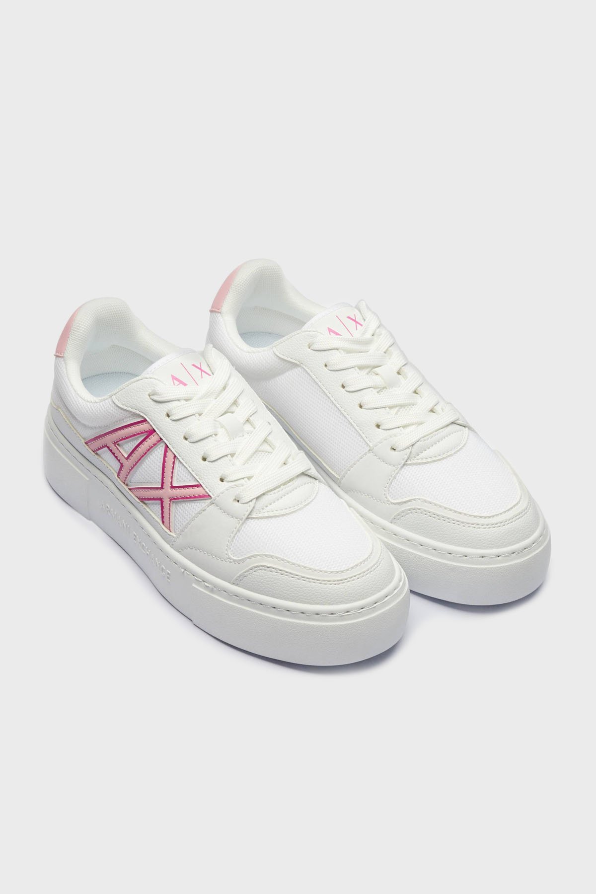Armani Exchage Logolu Kalın Taban Sneaker Bayan Ayakkabı XDX178 XV929 S935 BEYAZ-PEMBE