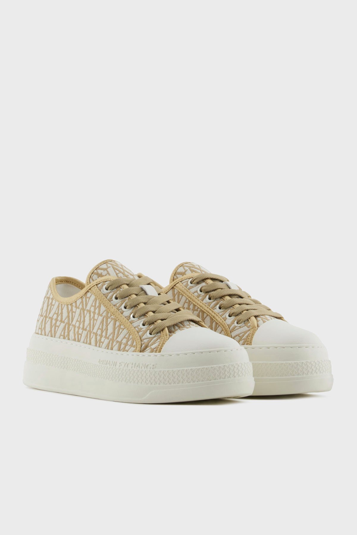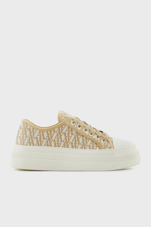 Armani Exchage Logolu Kalın Taban Sneaker Bayan Ayakkabı XDX180 XV931 U631 BEJ-BEYAZ