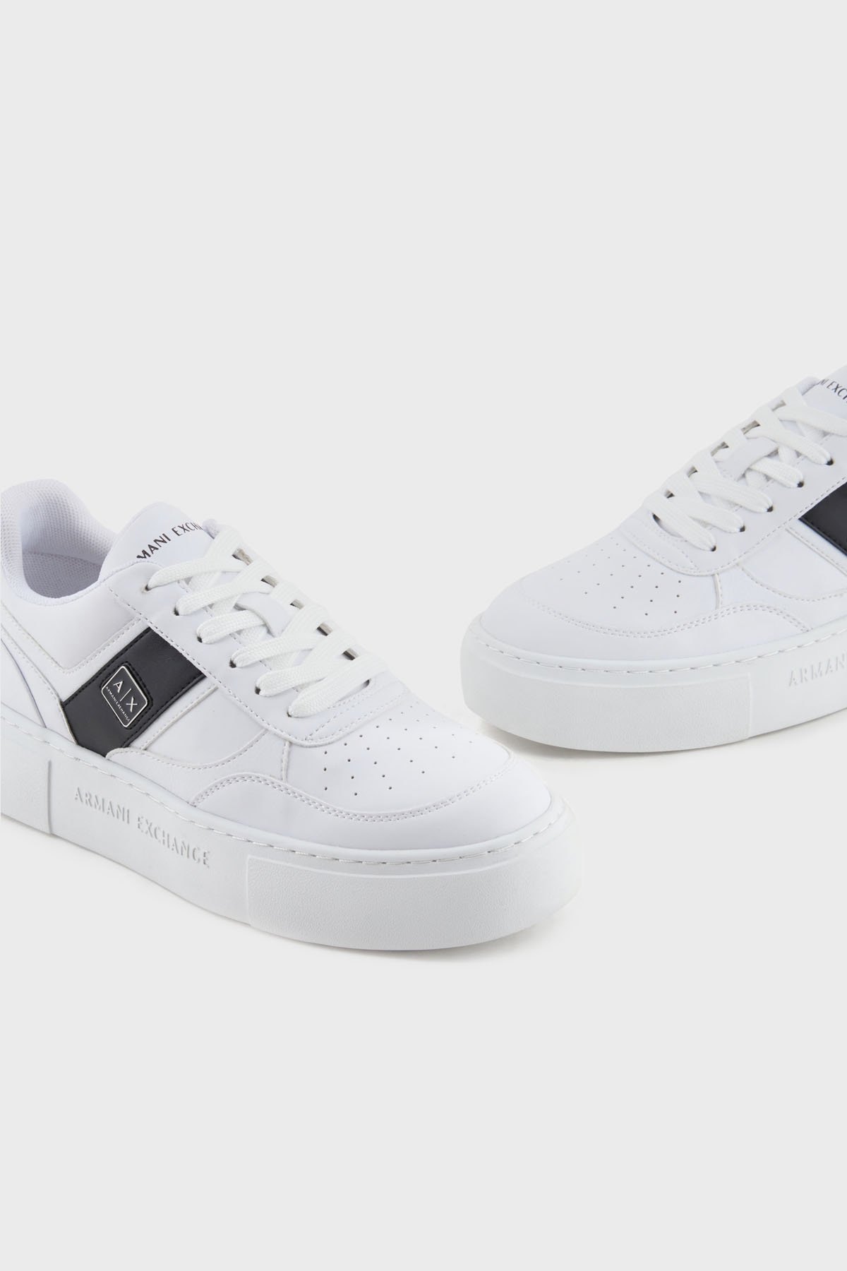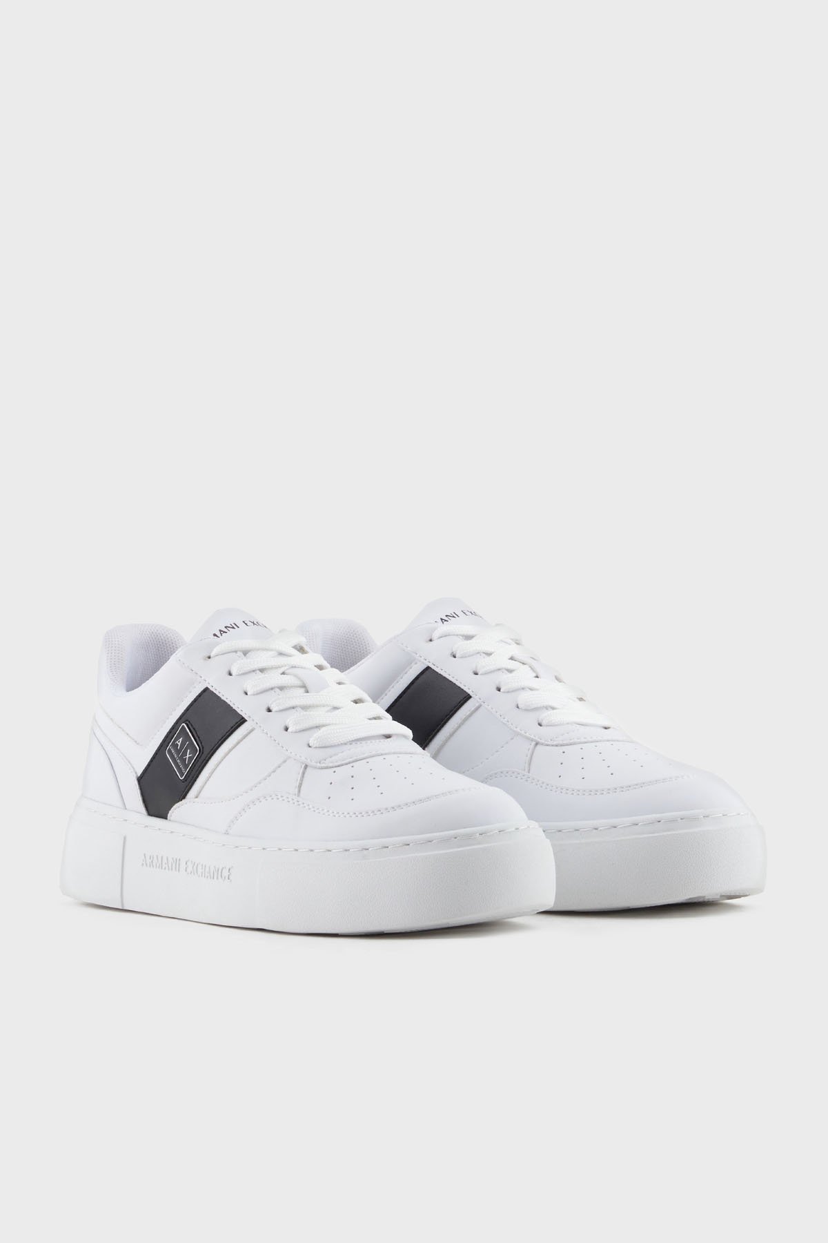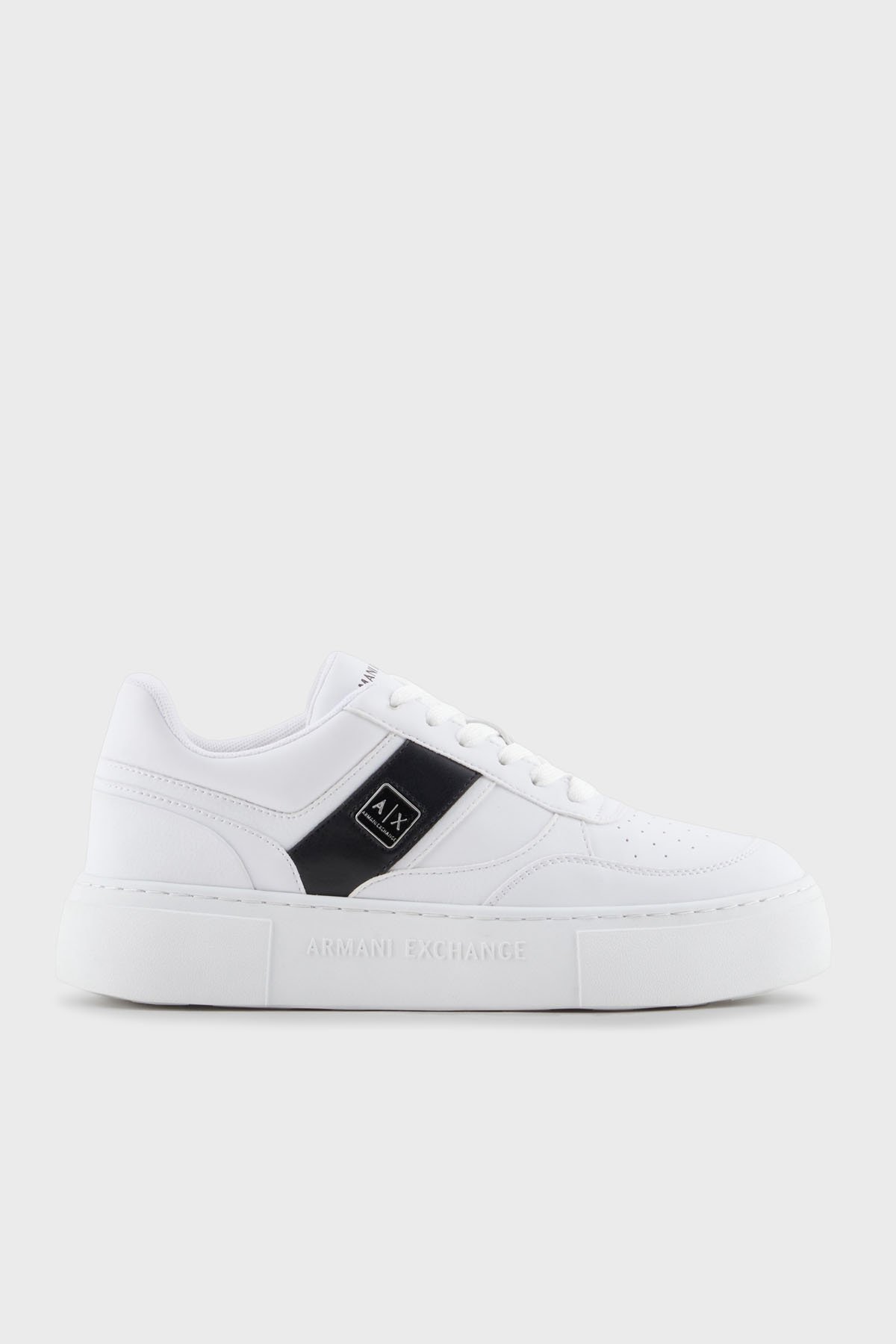Armani Exchage Logolu Şerit Detaylı Kalın Taban Sneaker Bayan Ayakkabı XDX176 XV917 K488 BEYAZ-SİYAH