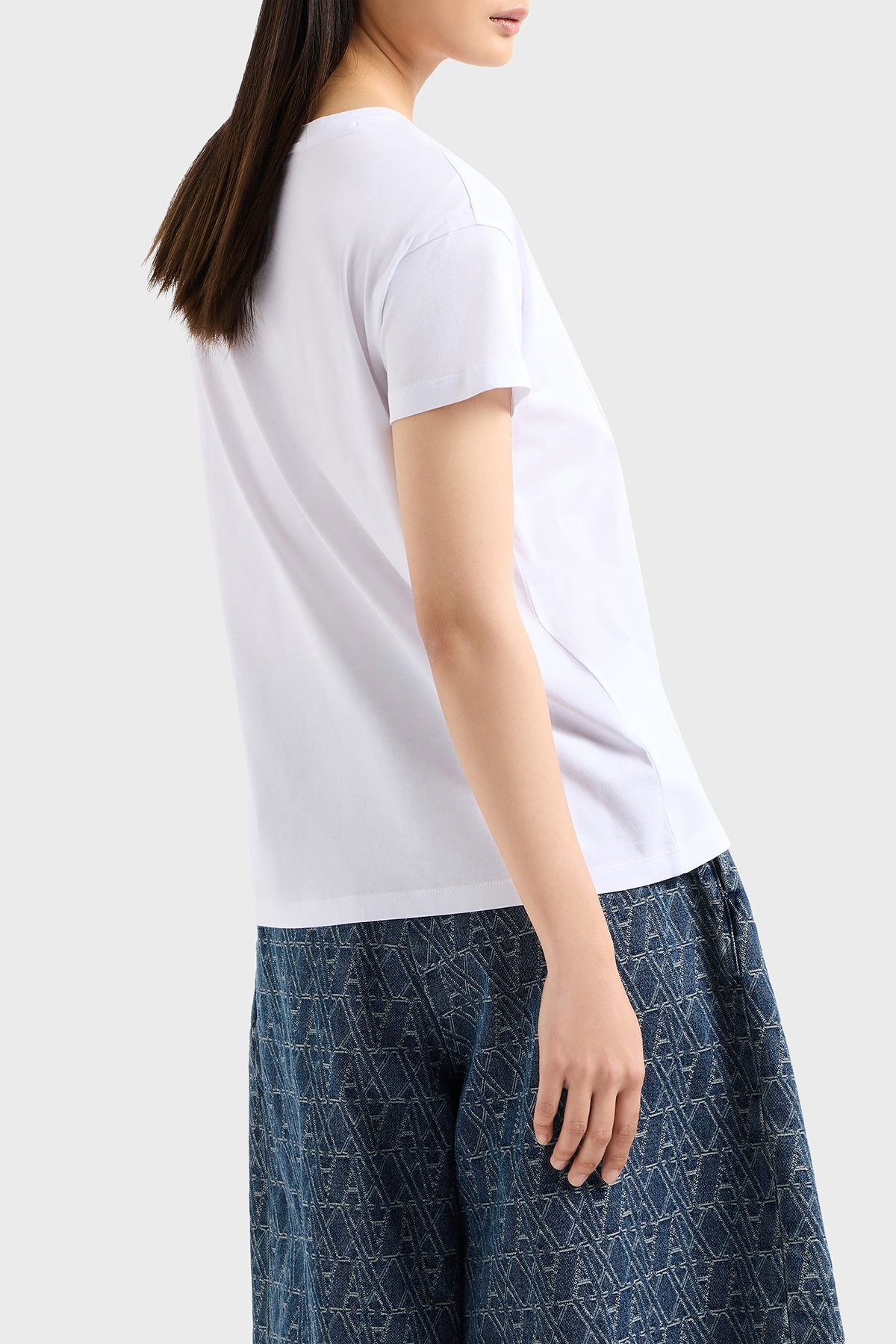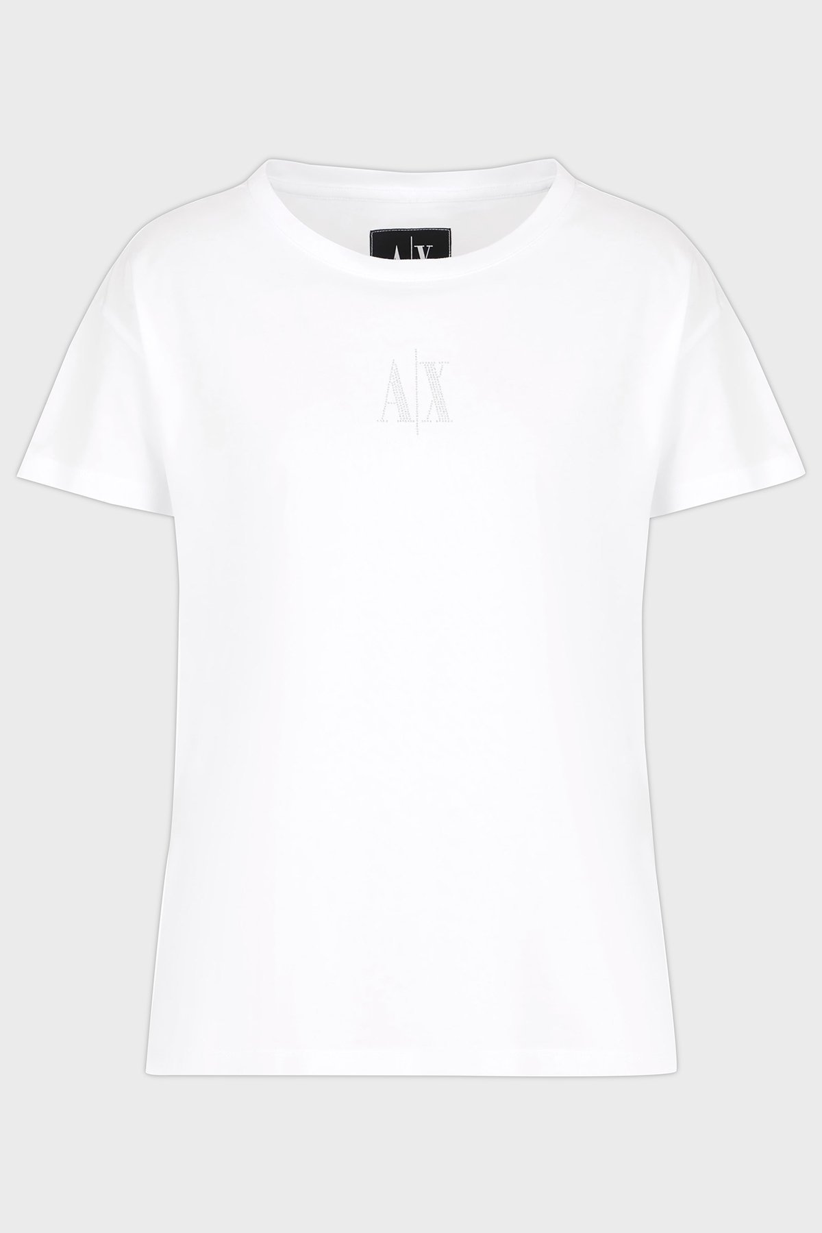 Armani Exchage Logolu Taşlı % 100 Pamuk Relaxed Fit Bisiklet Yaka Bayan T Shirt XW000830 AF10356 U0002 BEYAZ