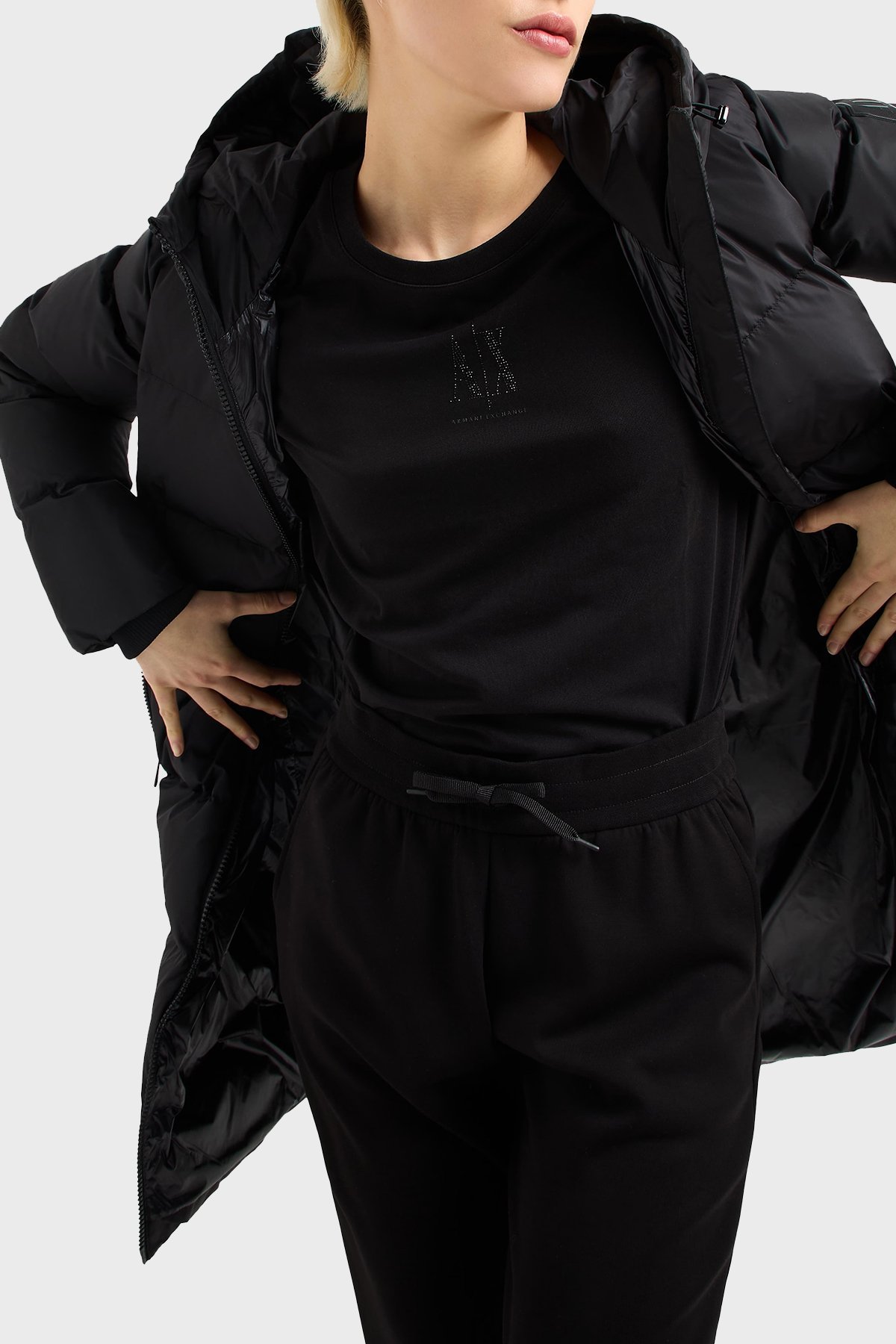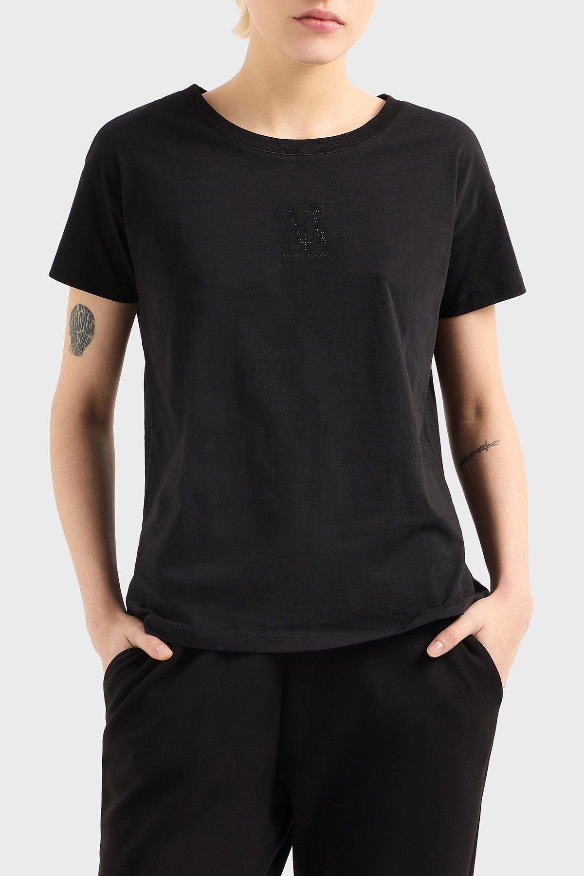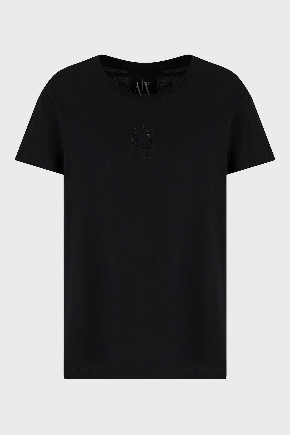 Armani Exchage Logolu Taşlı % 100 Pamuk Relaxed Fit Bisiklet Yaka Bayan T Shirt XW000830 AF10356 UC001 SİYAH