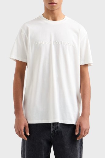 Armani Exchage Pamuklu Kabartmalı Logo Baskılı Regular Fit Bisiklet Yaka Erkek T Shirt XM000554 AF10356 U0009 BEYAZ