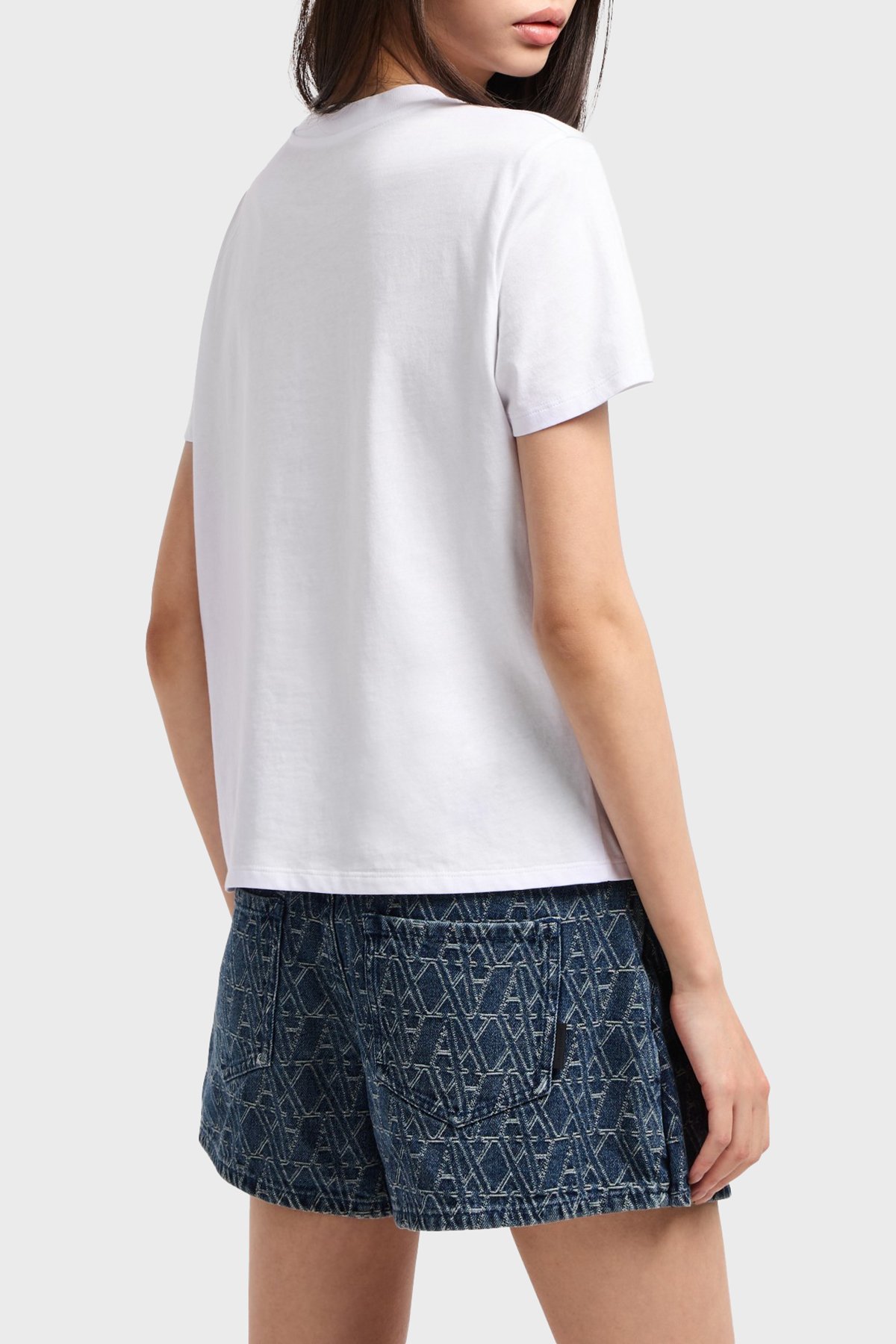 Armani Exchage Taşlı Logo Pamuklu Regular Fit Bayan T Shirt XW000518 AF10359 U0002 BEYAZ