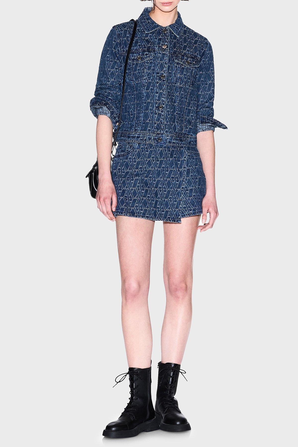Armani Exchance % 100 Pamuk Tamamı Jakarlı Regular Fit Bayan Kot Ceket XW000556 AF12844 FB055 LACİVERT