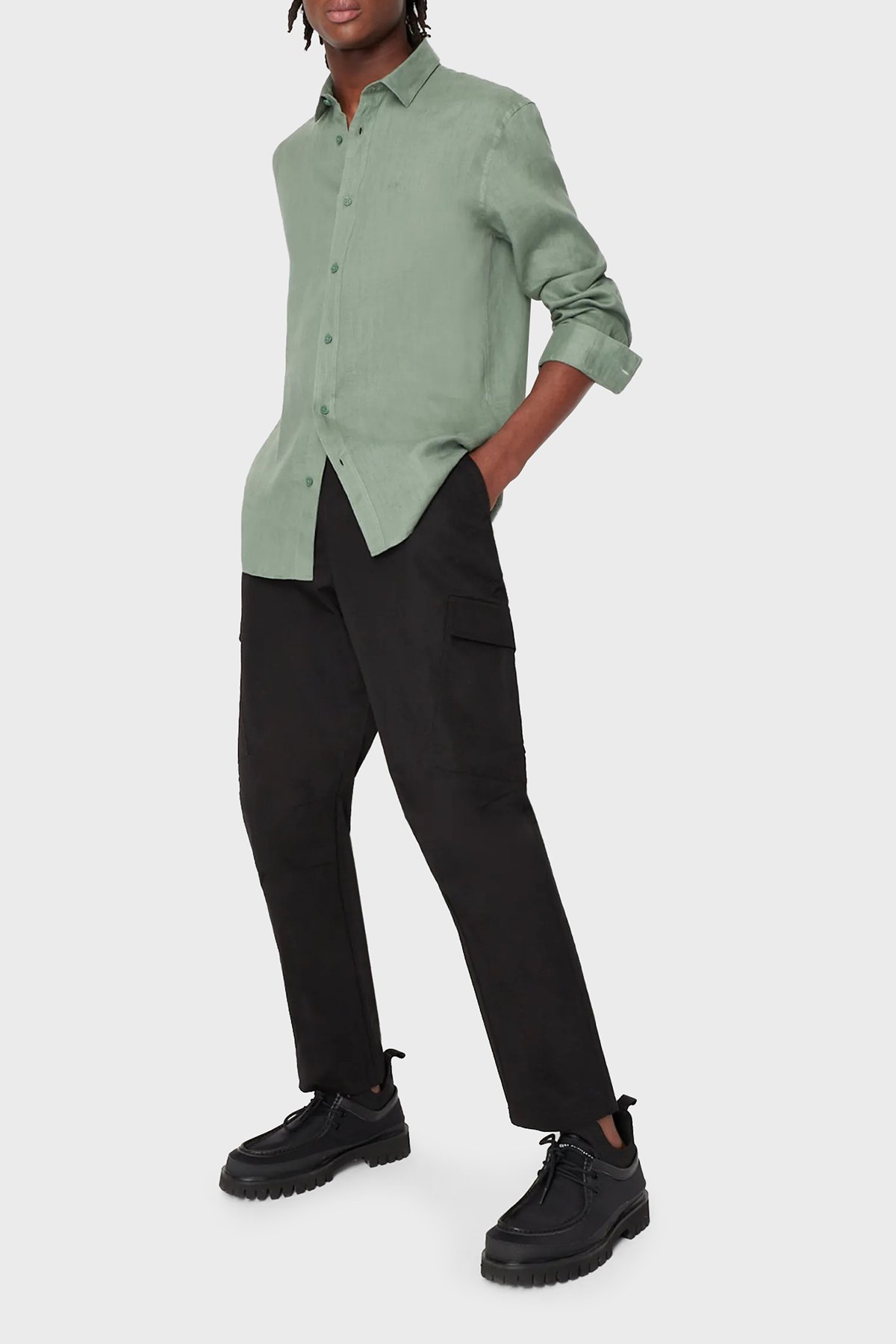 % 100 Keten Regular Fit Erkek Gömlek 8NZC50 ZNCFZ 1881 HAKİ