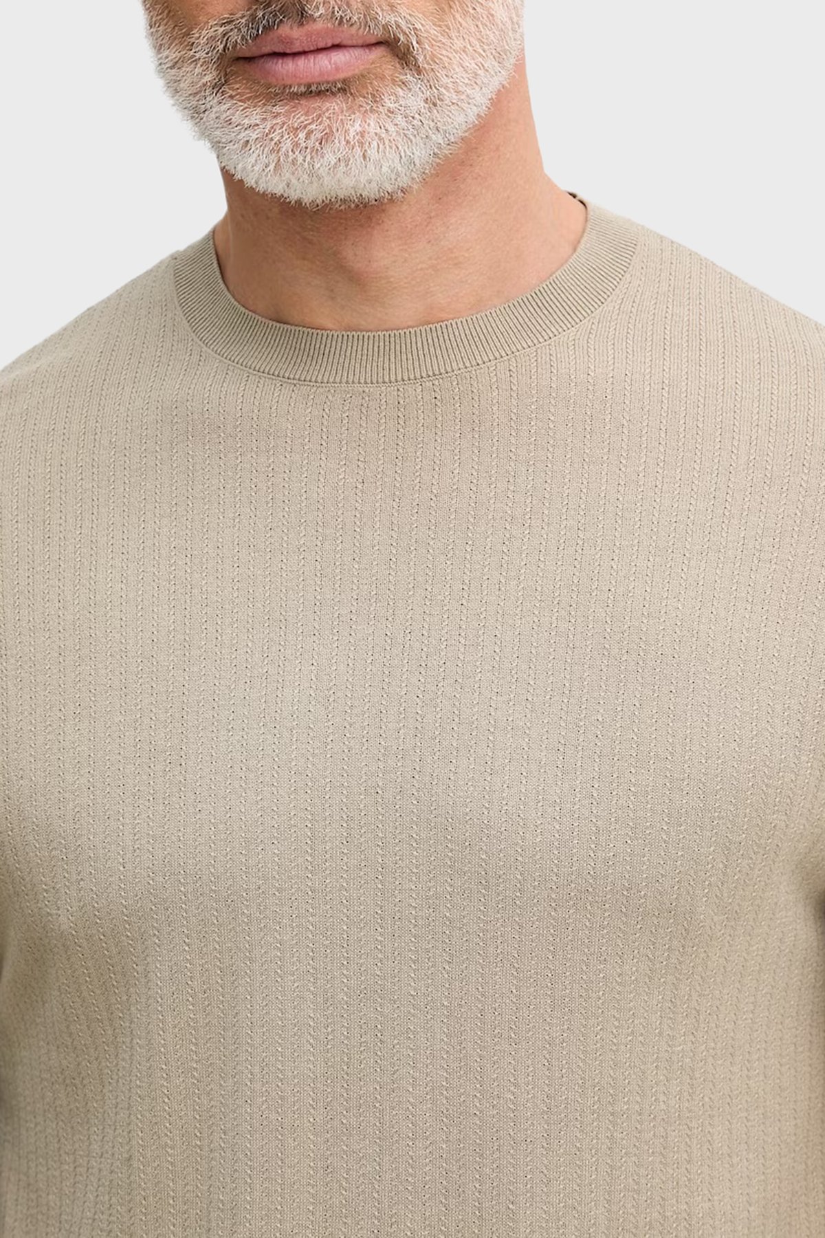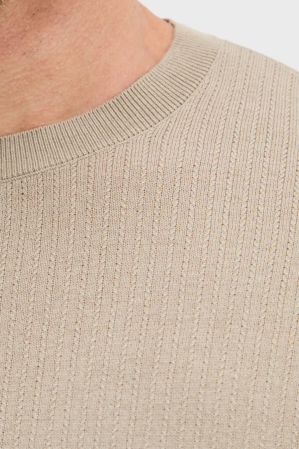 % 100 Pamuk Bisiklet Yaka Fitilli Triko Erkek Kazak XM002439 AF22249 U6229 Bej