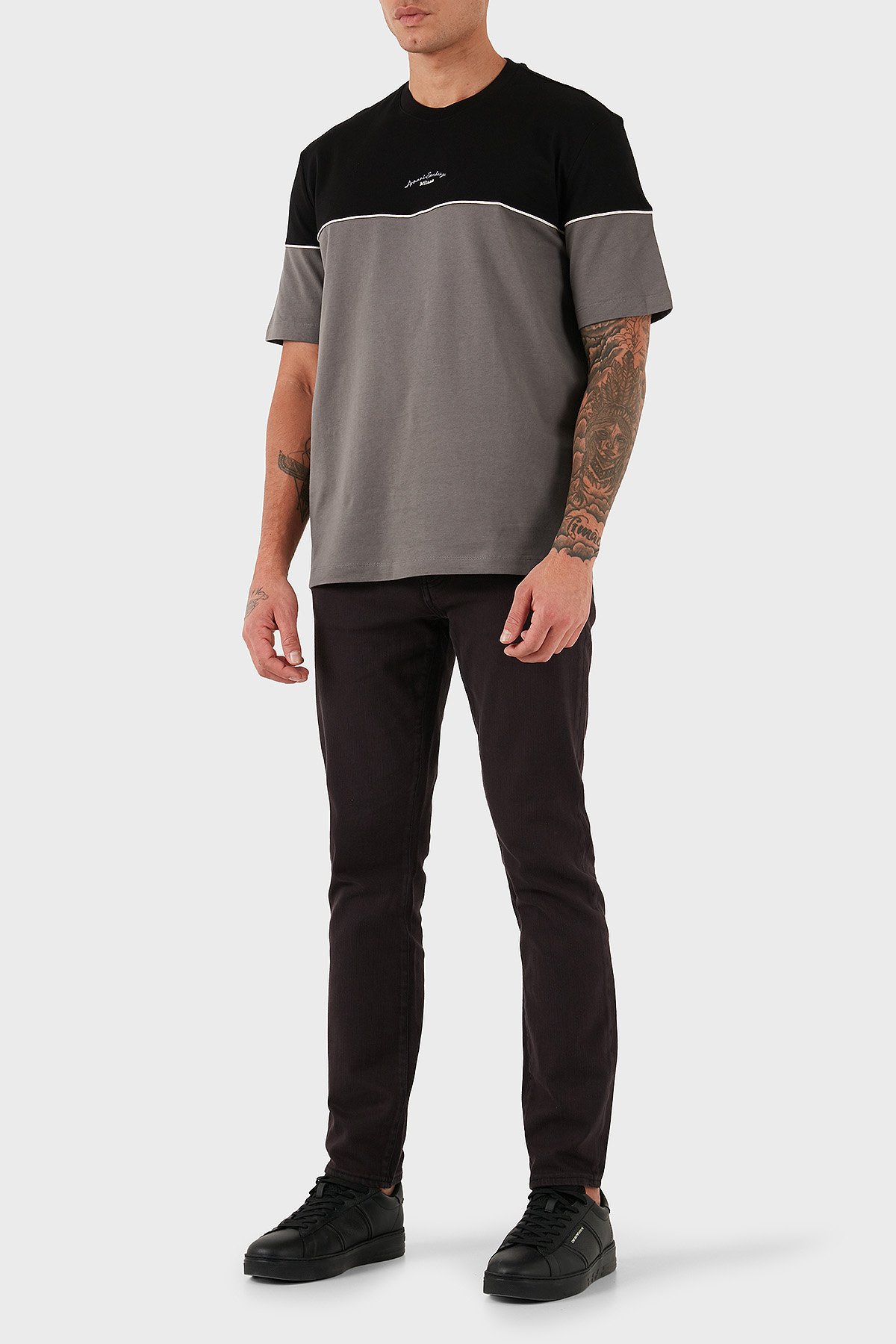 % 100 Pamuk Regular Fit Bisiklet Yaka Renk Bloklu Erkek T Shirt XM001034 AF10362 MC225 SİYAH-KOYU GRİ