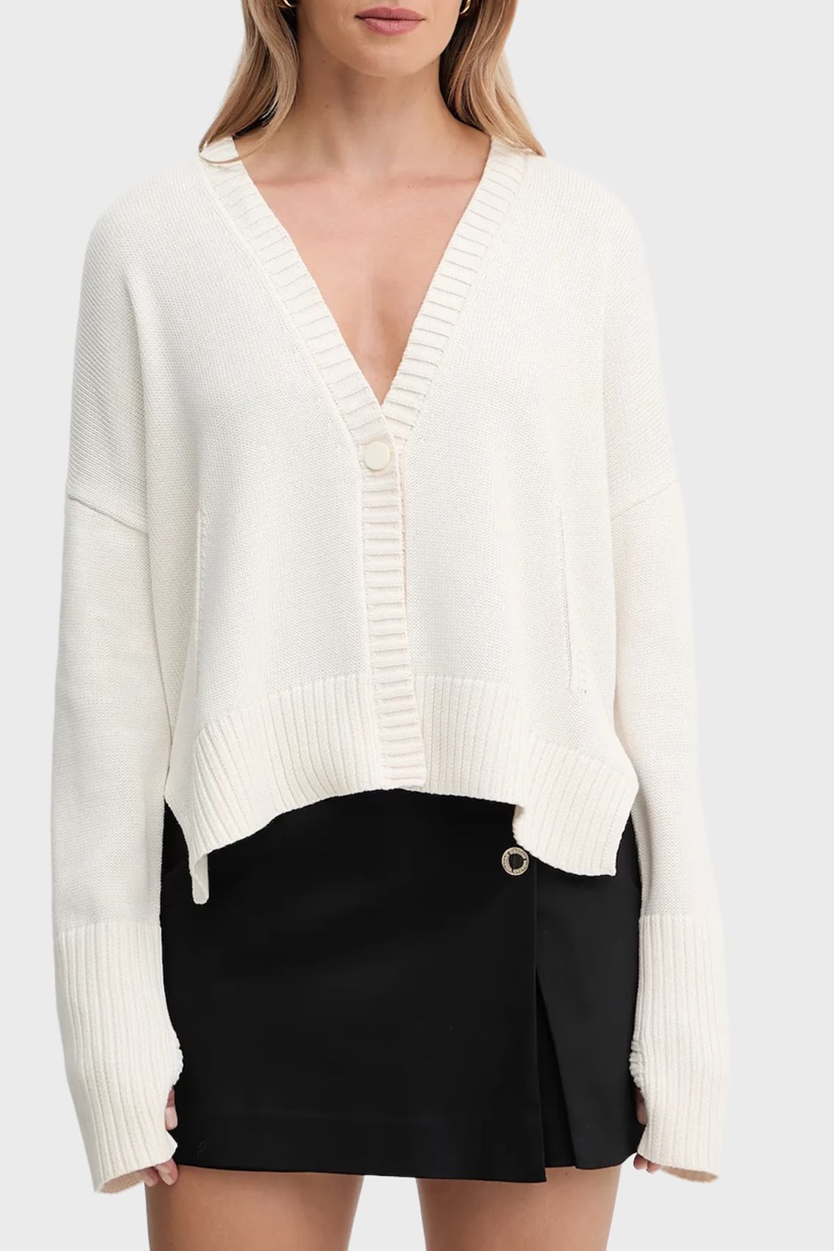 % 100 Pamuk Relaxed Fit V Yaka Asimetrik Bayan Hırka XW001304 AF16552 U1003 EKRU