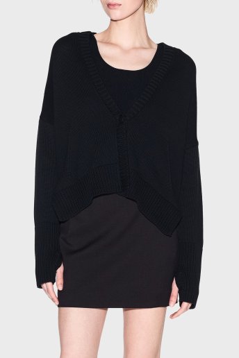 % 100 Pamuk Relaxed Fit V Yaka Asimetrik Bayan Hırka XW001304 AF16552 UC001 SİYAH