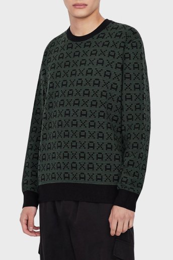 Baskılı Bisiklet Yaka Regular Fit Erkek Kazak 6KZM1T ZMN4Z 8250 HAKİ-SİYAH