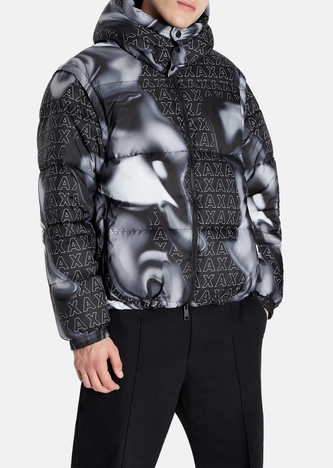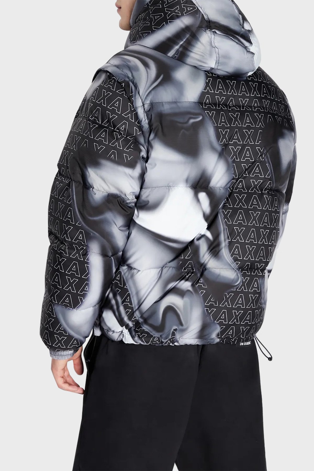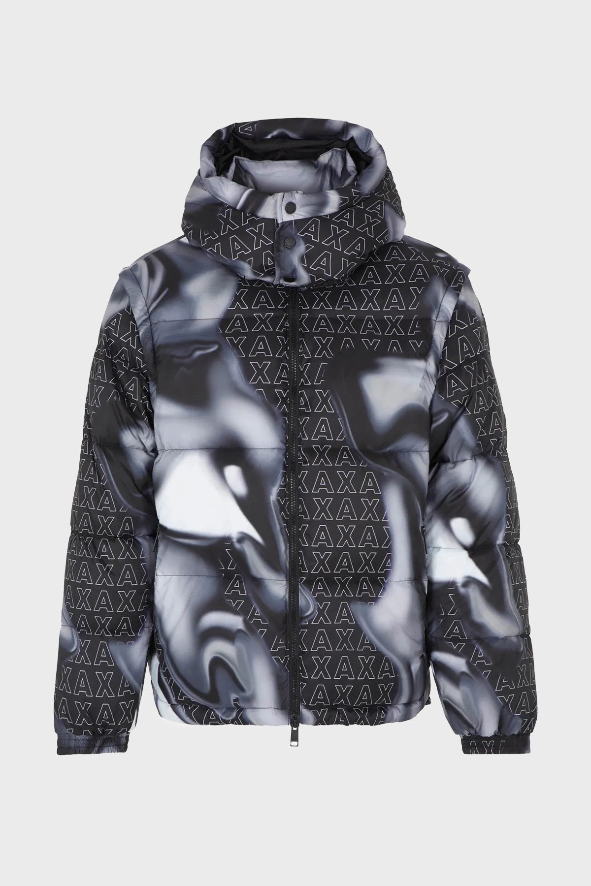 Çıkarılabilir Kapüşonlu Logo Desenli Regular Fit Şişme Erkek Mont 6RZB06 ZNUQZ 22BS SİYAH-GRİ