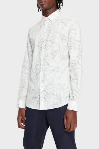 Desenli % 100 Pamuk Regular Fit Erkek Gömlek 3RZC11 ZNXLZ 01EK BEYAZ