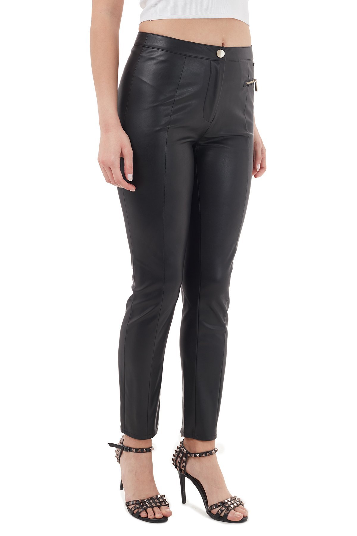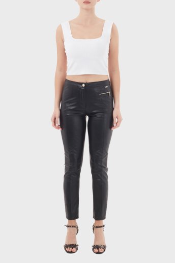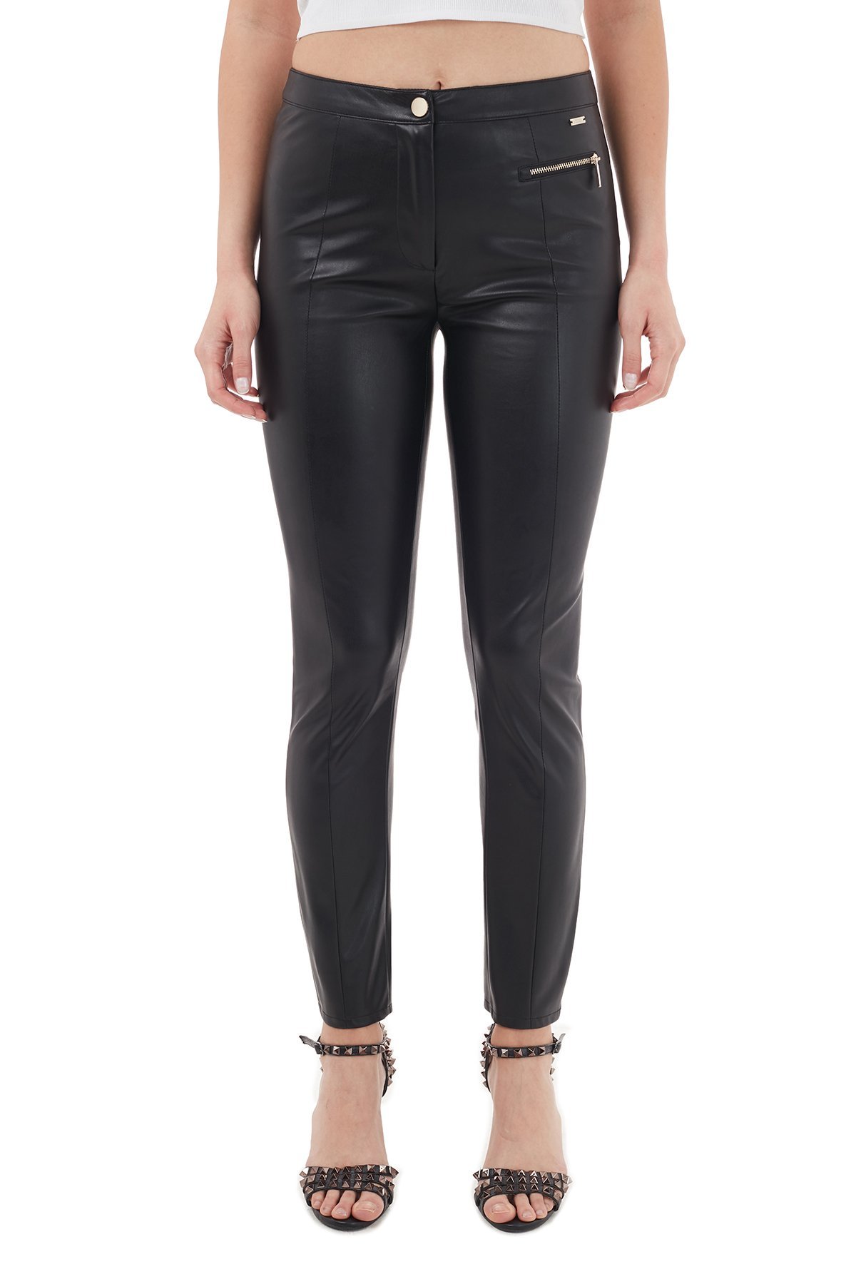 Fermuarlı Paça Detaylı Deri Görünümlü Bayan Tayt 6HYP11 YNKNZ 1200 SİYAH