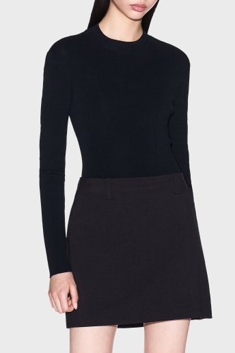 Fitilli Slim Fit Bisiklet Yaka Basic Bayan Kazak XW000763 AF10352 UC001 SİYAH