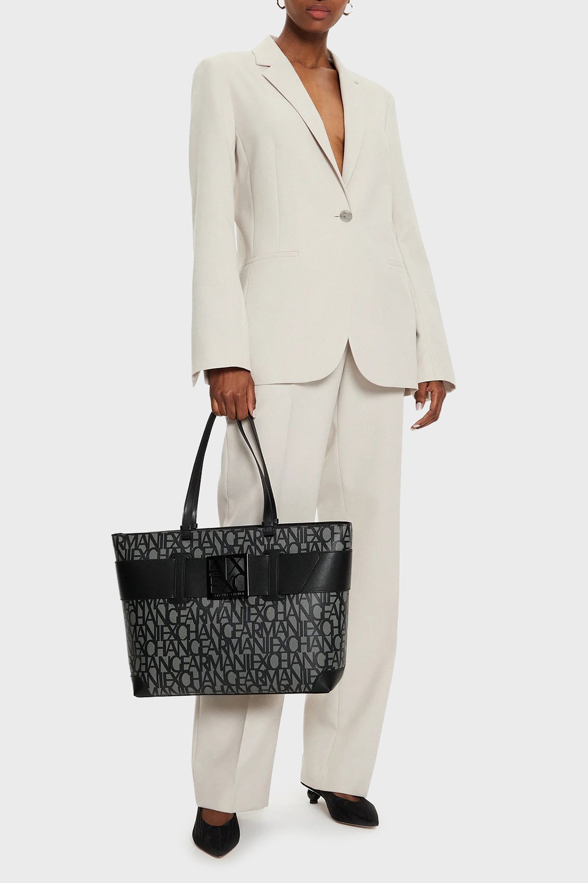 Jakarlı Logo Baskılı Büyük Bayan Çanta 949127 3F742 00850 SİYAH