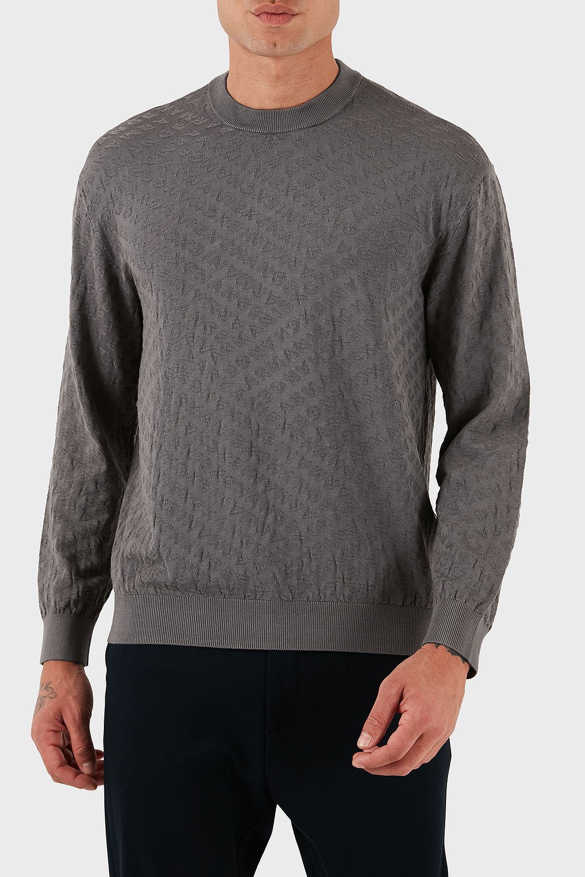 Jakarlı Logo Baskılı Regular Fit Bisiklet Yaka Erkek Kazak XM001316 AF10454 U8092 KOYU GRİ