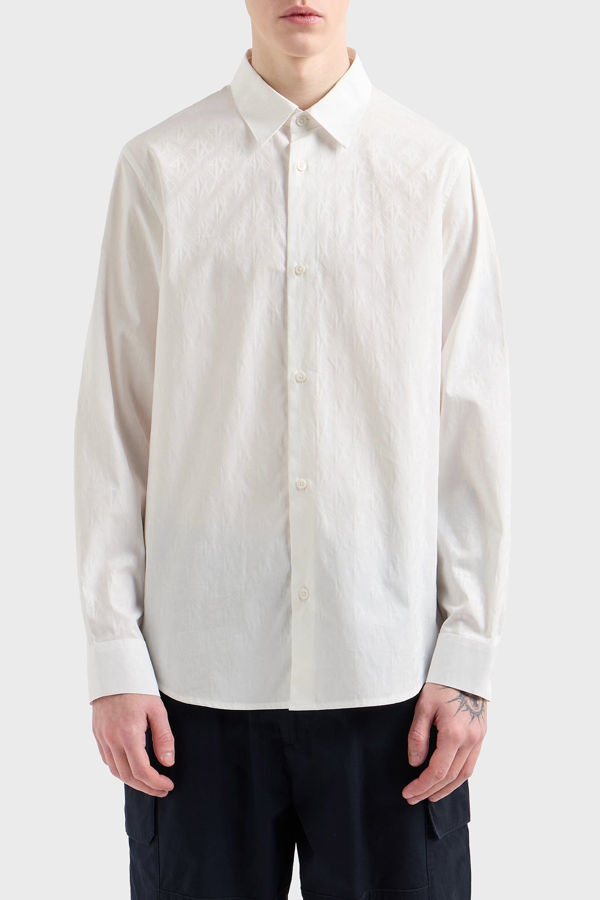 Kabartmalı Logo Baskılı Pamuklu Regular Fit Kent Yaka Erkek Gömlek XM000197 AF12179 U0009 BEYAZ