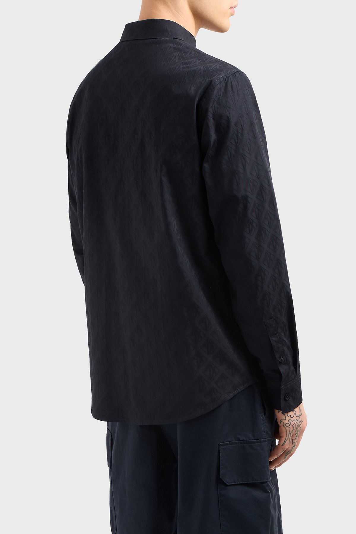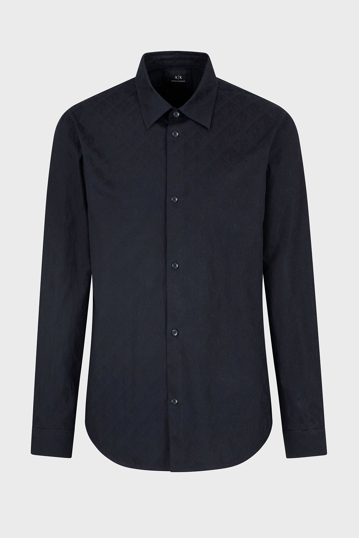 Kabartmalı Logo Baskılı Pamuklu Regular Fit Kent Yaka Erkek Gömlek XM000197 AF12179 UB101 LACİVERT