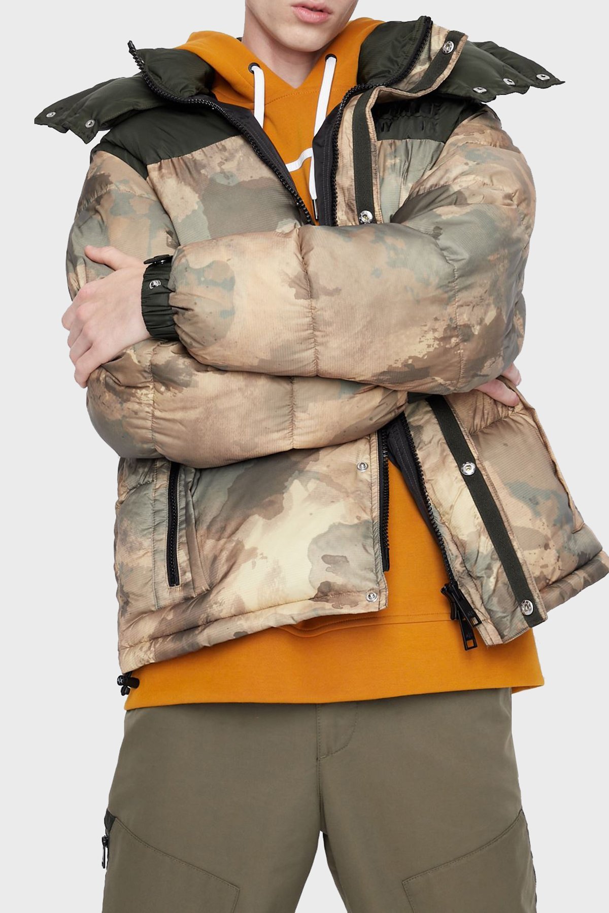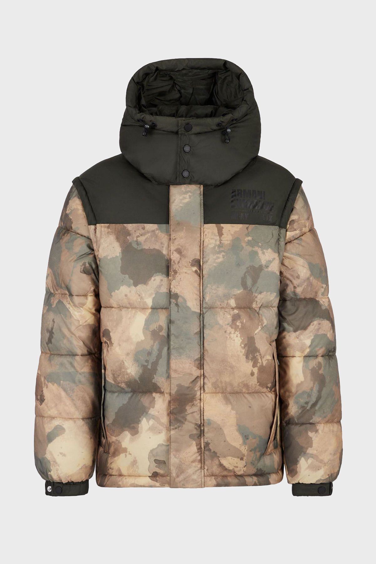 Kamuflaj Desenli Çıkarılabilir Kapüşonlu ve Kollu Kapitone Erkek Mont 6LZB22 ZNUQZ 2809 HAKİ-KAMUFLAJ