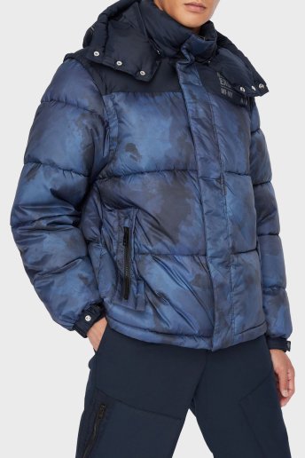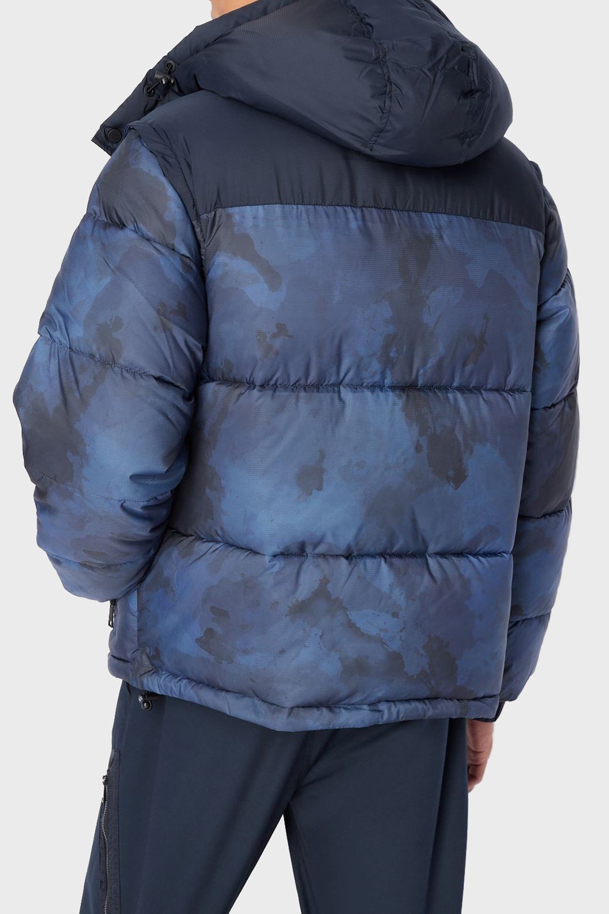 Kamuflaj Desenli Çıkarılabilir Kapüşonlu ve Kollu Kapitone Erkek Mont 6LZB22 ZNUQZ 55HV LACİVERT-KAMUFLAJ