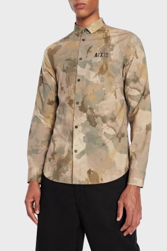 Kamuflaj Desenli Regular Fit Pamuklu Erkek Gömlek 6LZC68 ZNRYZ 2812 HAKİ-KAMUFLAJ