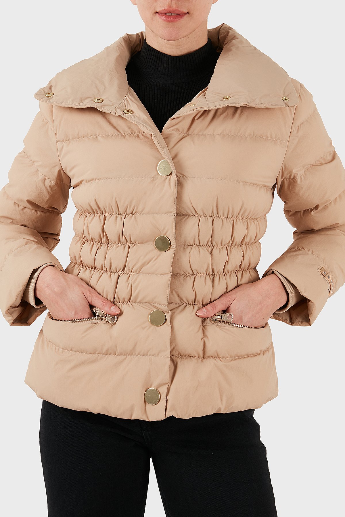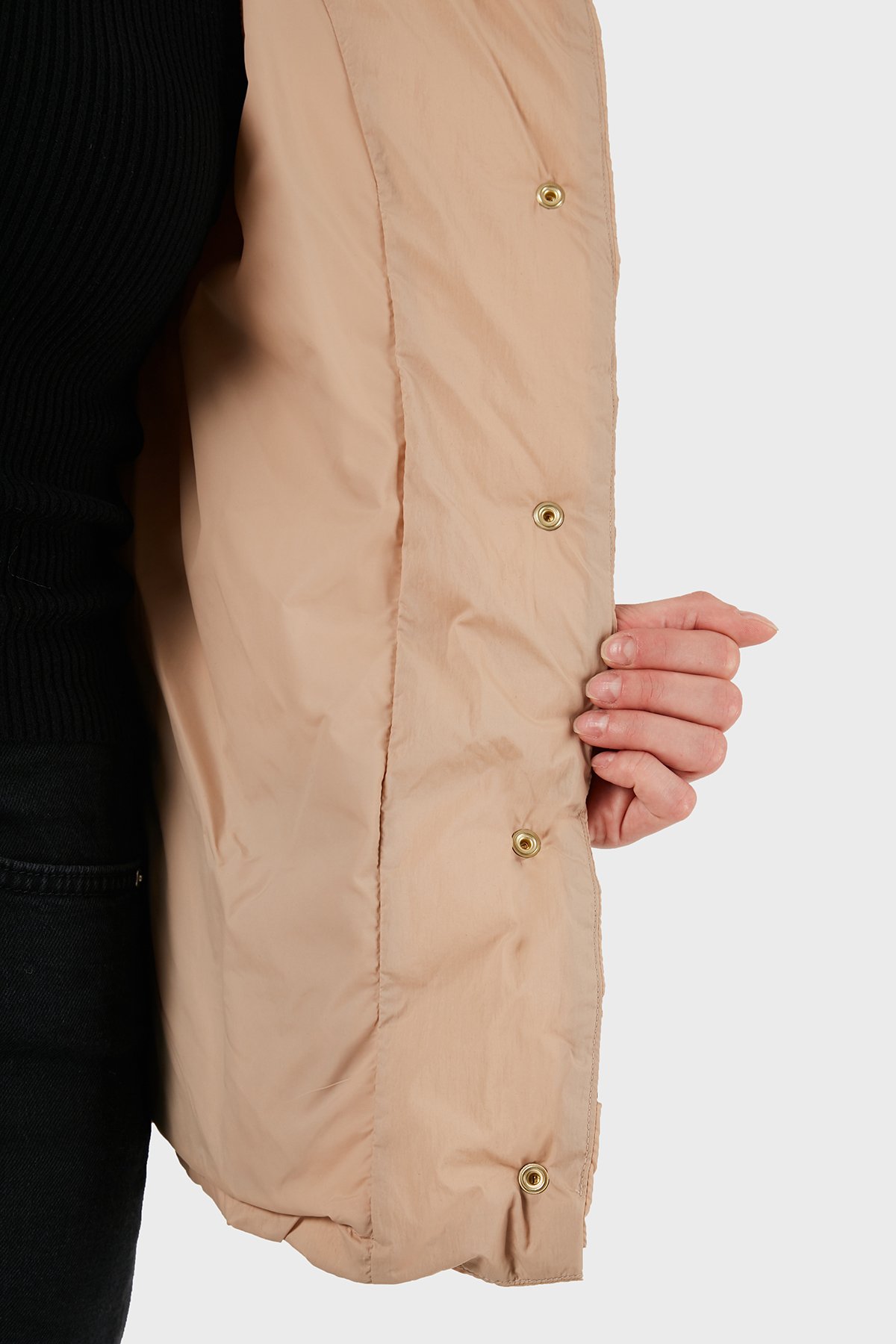 Kapitoneli Regular Fit Dik Yaka Düğmeli Bayan Mont XW000653 AF15984 U1051 KUM