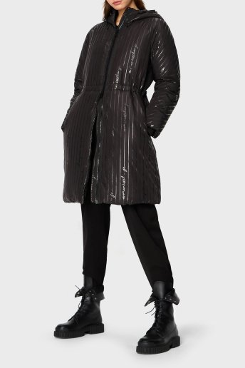 Kapüşonlu Bel Lastikli Şişme Bayan Kaban 6RYK06 YN1MZ 02EL SİYAH