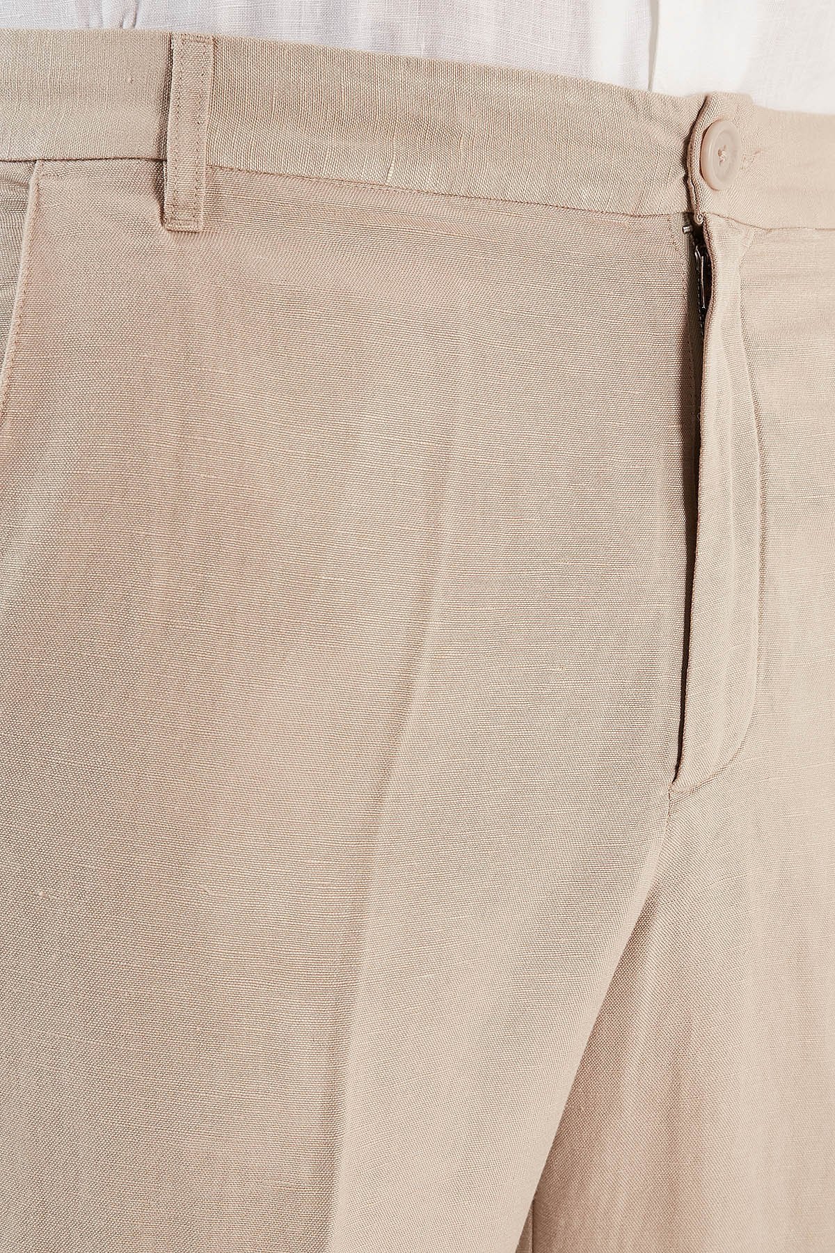 Keten Karışımlı Yüksek Bel Regular Fit Erkek Pantolon 8NZP15 ZNFNZ 1724 BEJ