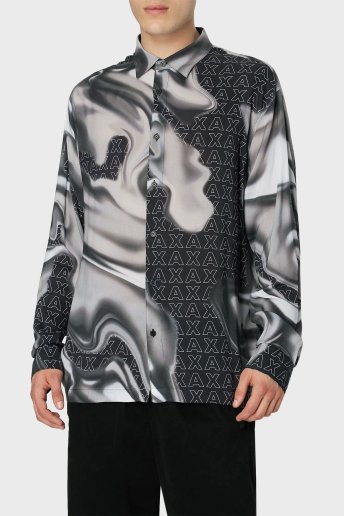 Logo Baskılı Desenli Erkek Gömlek 6RZC10 ZNRNZ 22BS SİYAH-GRİ
