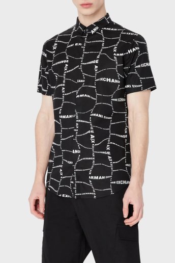 Logo Baskılı Kısa Kollu Pamuklu Slim Fit Erkek Gömlek 3RZC04 ZNEAZ 02EC SİYAH