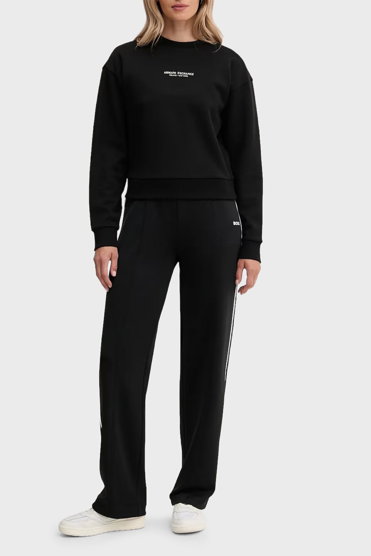 Logo Baskılı Pamuklu Relaxed Fit Bisiklet Yaka Crop Bayan Sweat XW001451 AF10830 MC021 SİYAH-GOLD