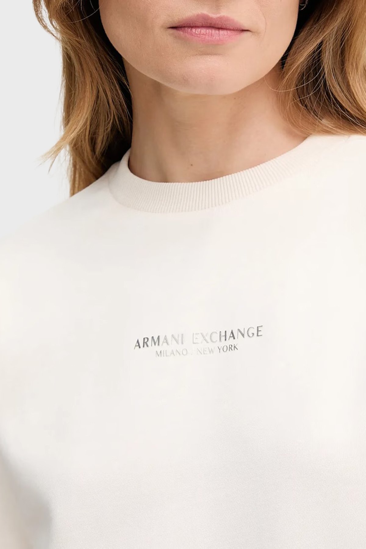 Logo Baskılı Pamuklu Relaxed Fit Bisiklet Yaka Crop Bayan Sweat XW001451 AF10830 U1003 EKRU