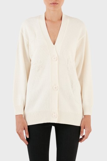 Logo Yazılı Pamuklu Relaxed Fit Düğmeli Triko Bayan Hırka 6RYE1A YMV3Z 1130 EKRU
