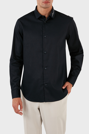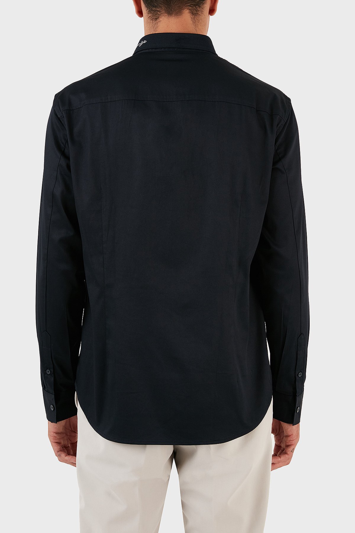 Logo Yazılı Pamuklu Uzun Kollu Regular Fit Erkek Gömlek 6RZCL2 ZN10Z 1583 LACİVERT